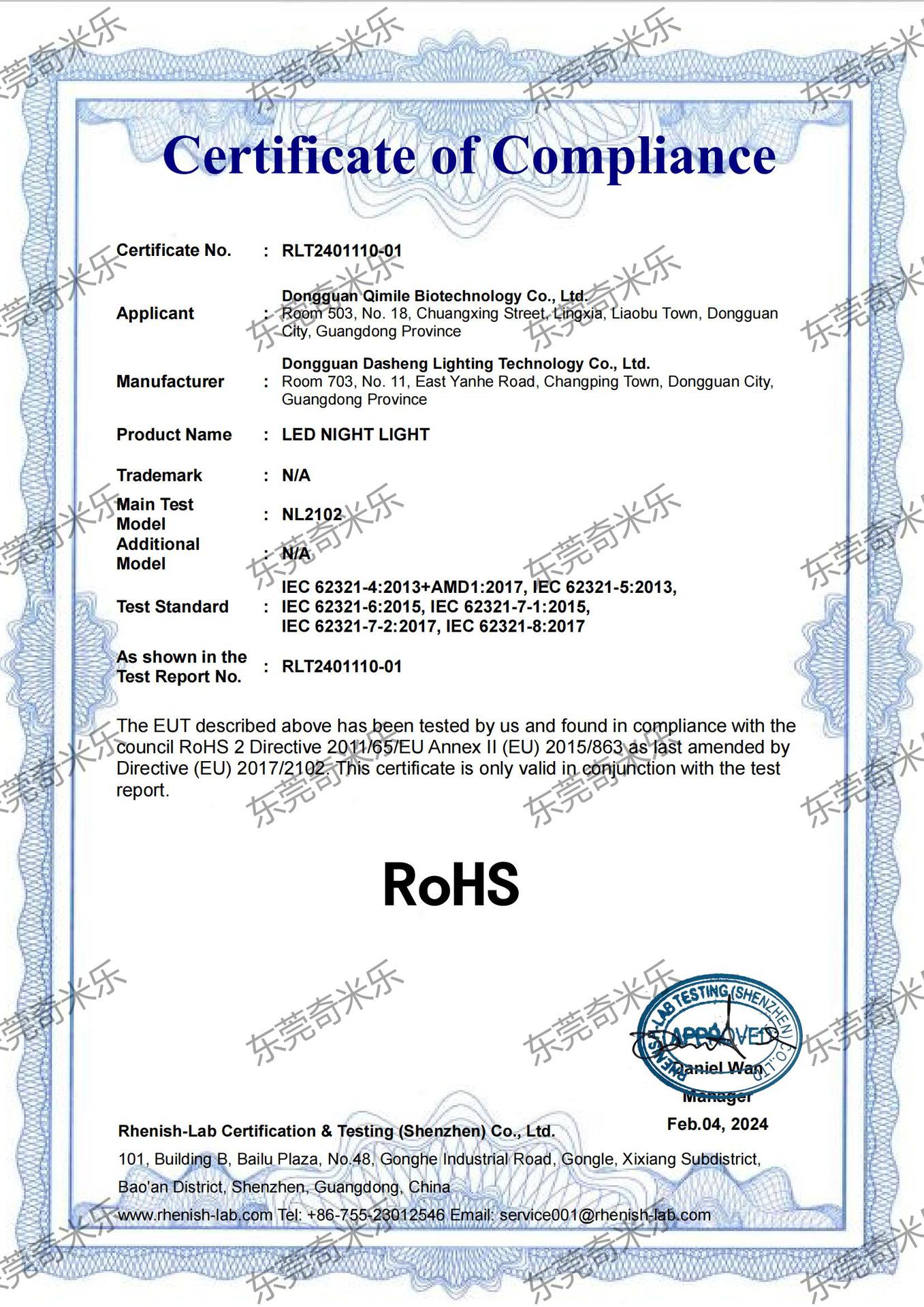 产品型号:NL2102 证书编号:CTSS24092714-LVD