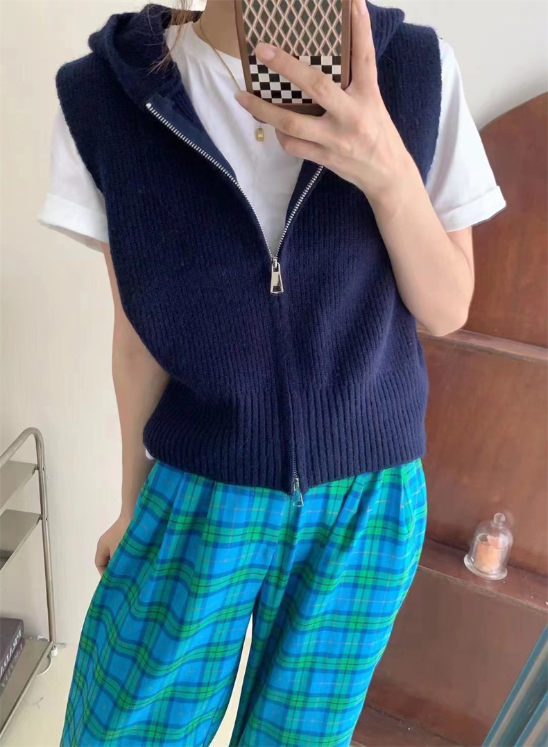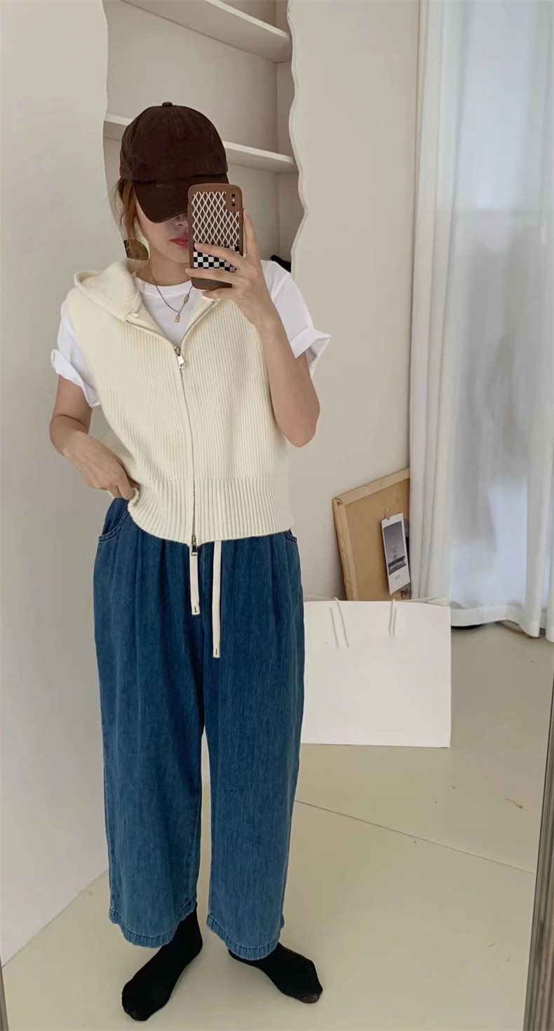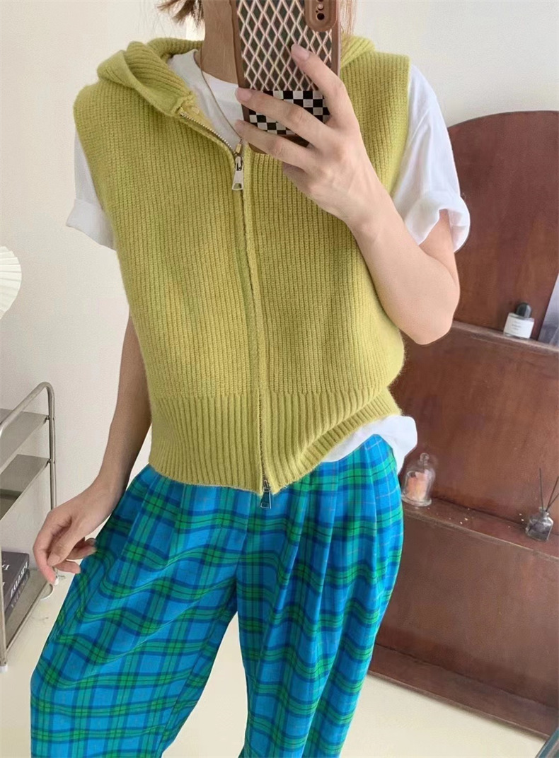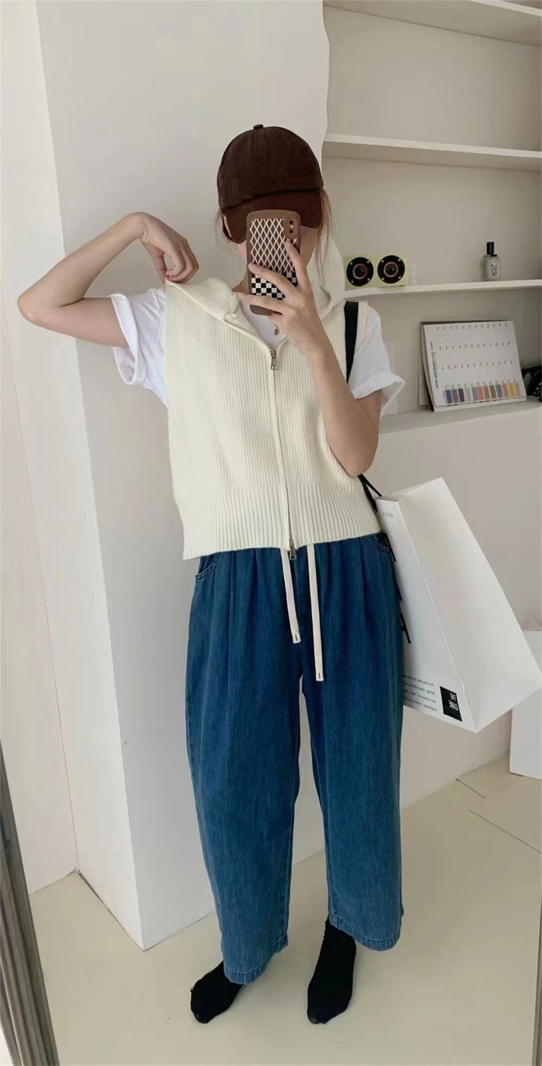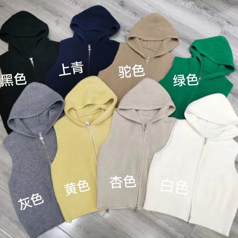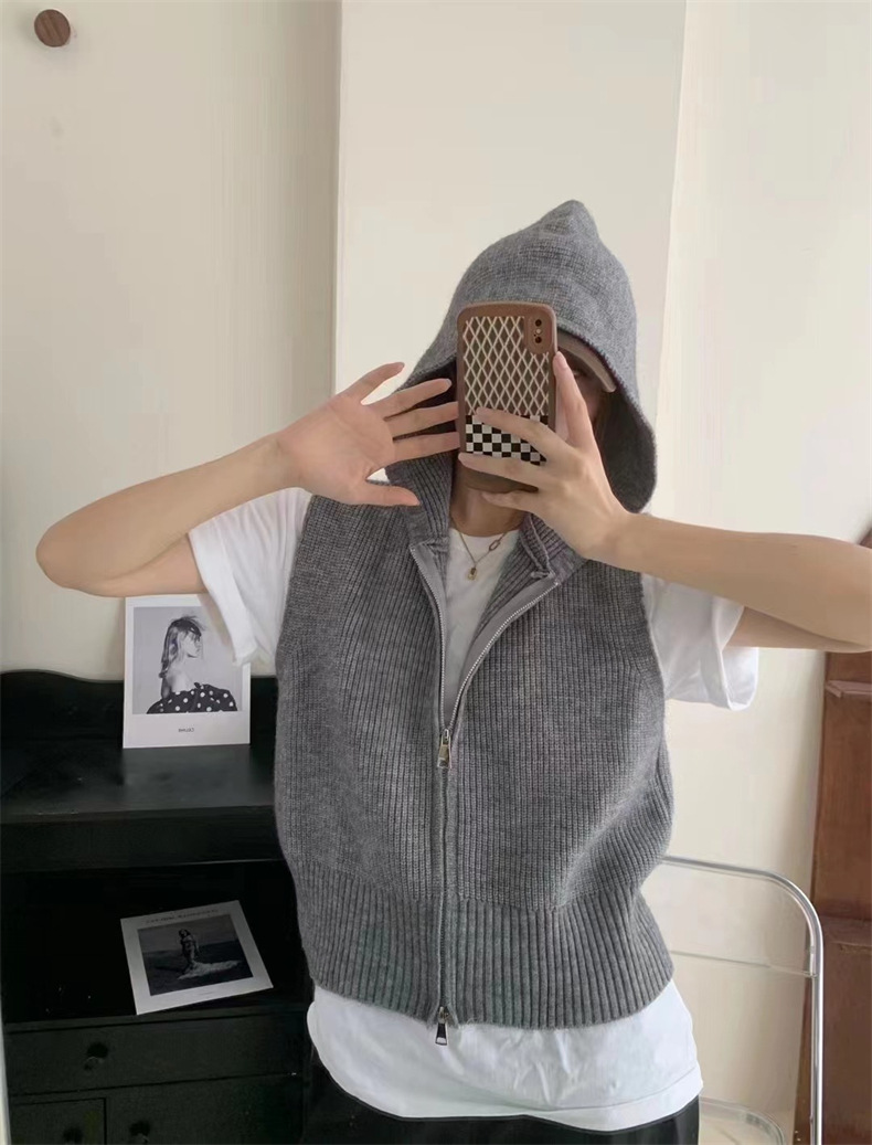 후드 니트 조끼 새로운 지퍼 카디건 여성의 짧은 겉옷 느슨한 웨이슬 민소매 스웨터 코트 탑 여성스토어 가기
