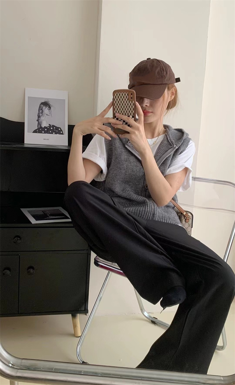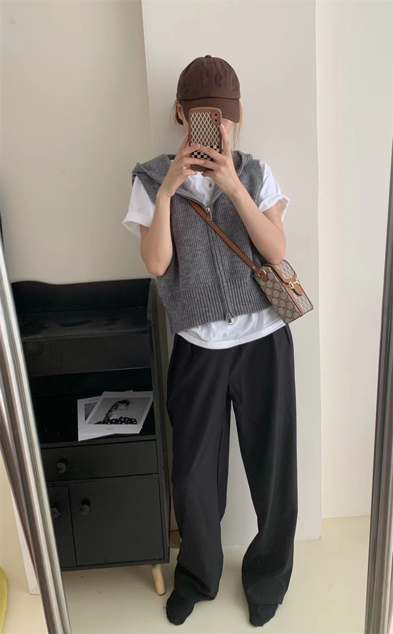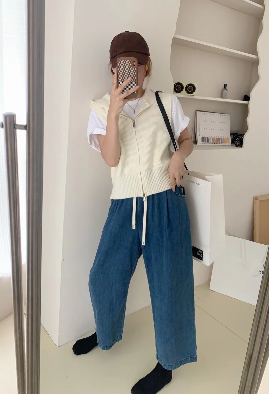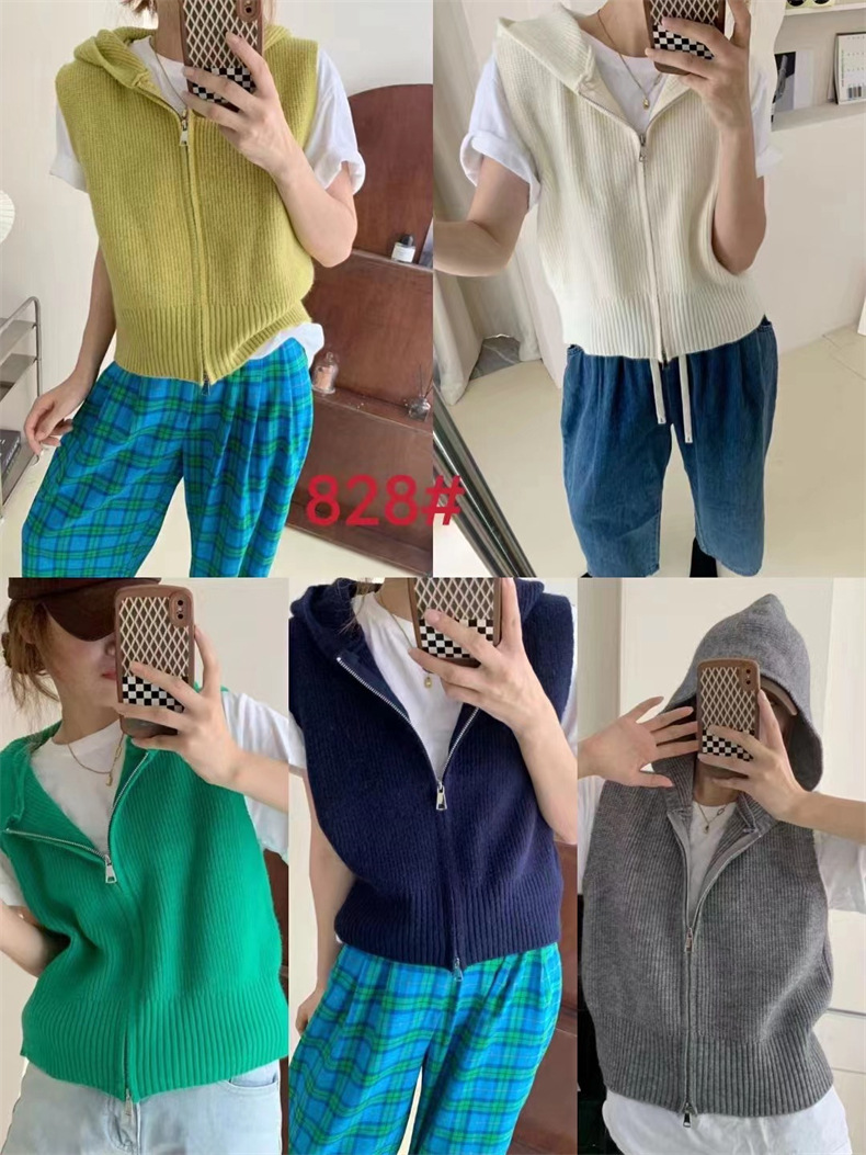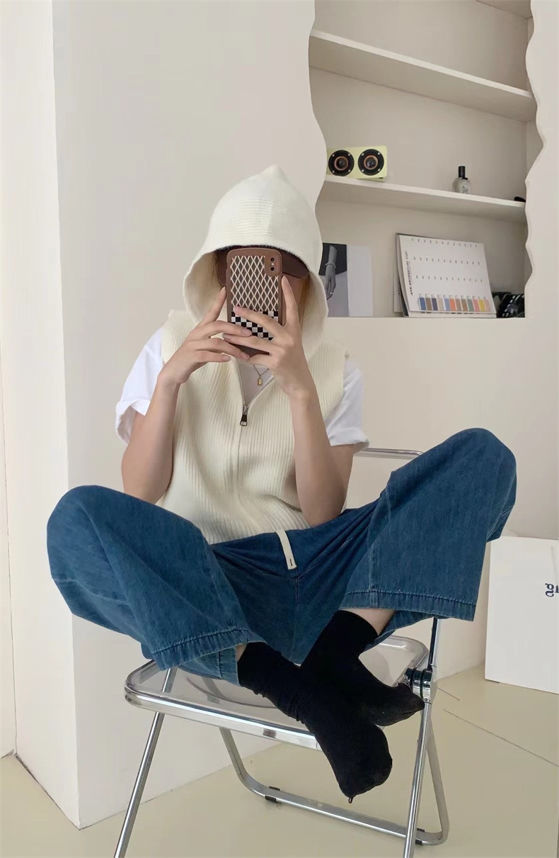 후드 니트 조끼 새로운 지퍼 카디건 여성의 짧은 겉옷 느슨한 웨이슬 민소매 스웨터 코트 탑 여성스토어 가기