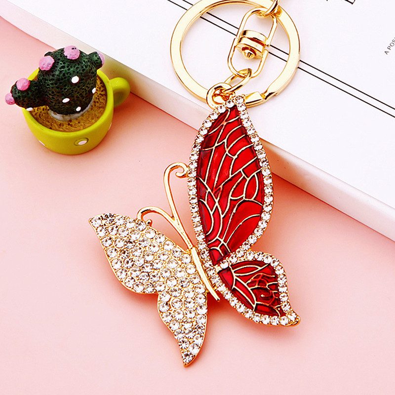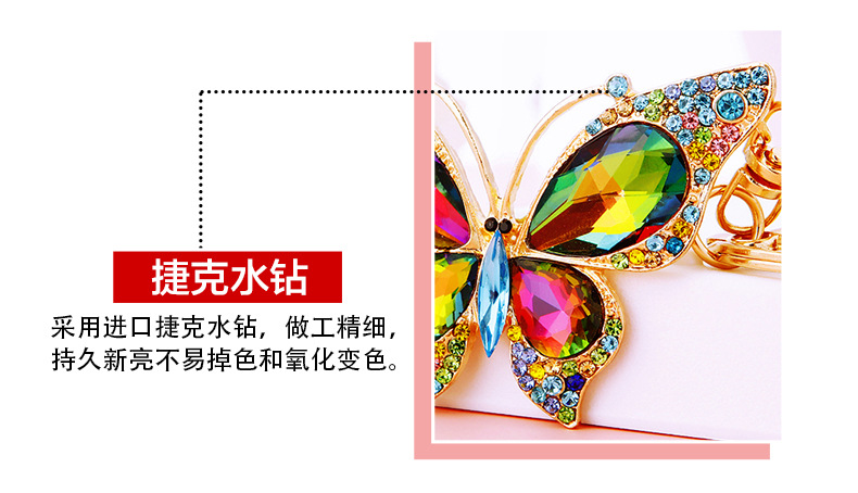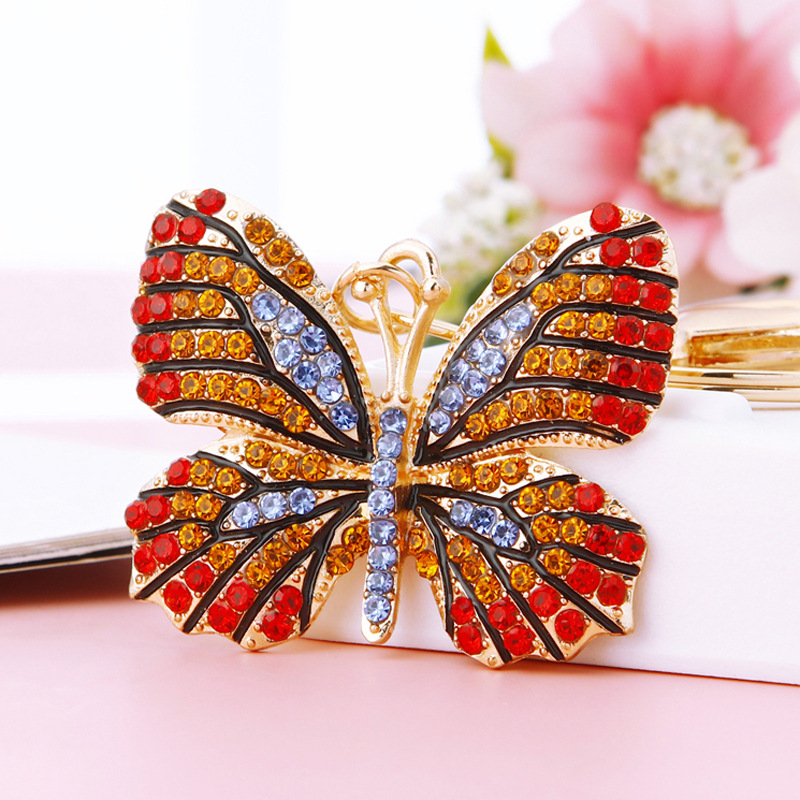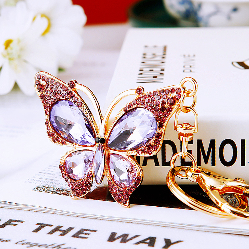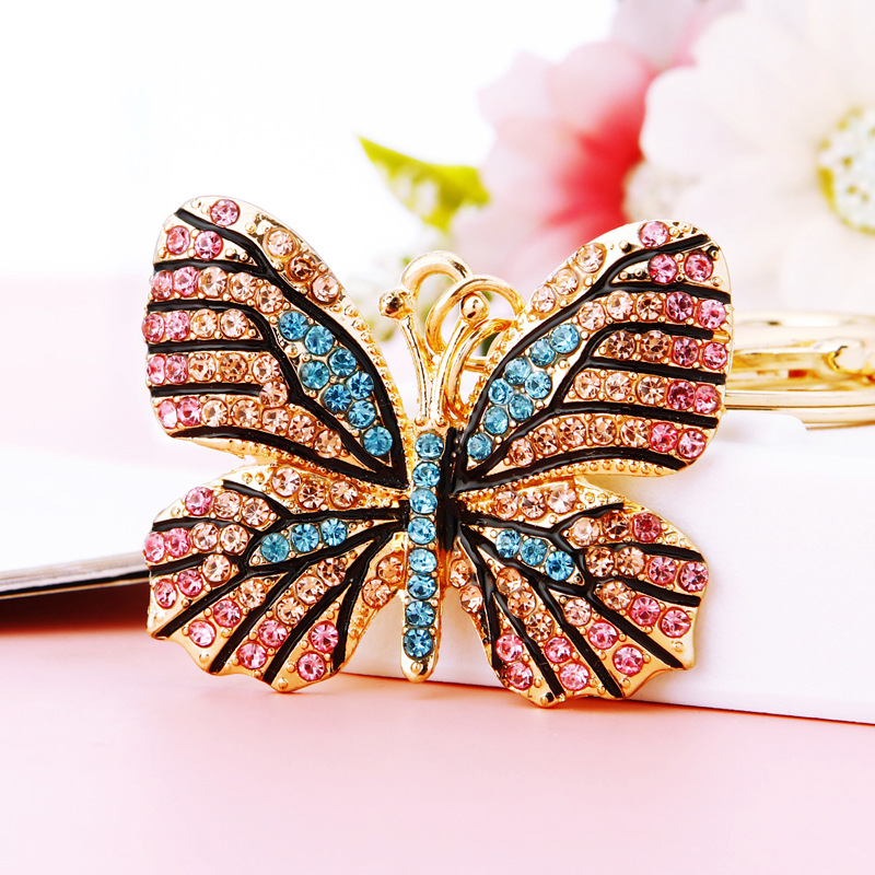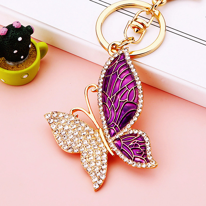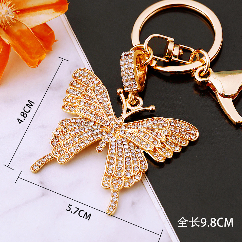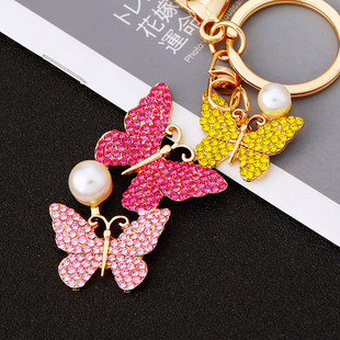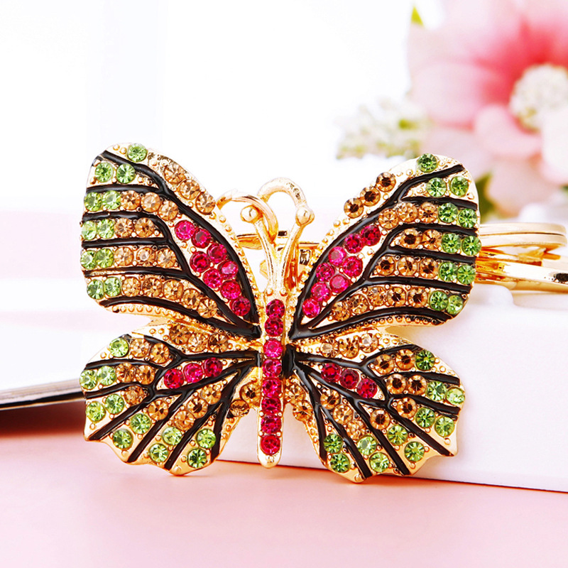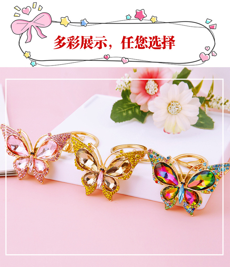 유럽과 미국 다채로운 크리스탈 나비 열쇠 고리 금속 합금 창조적 인 다이아몬드 여자의 가방 펜던트 열쇠 고리 선물