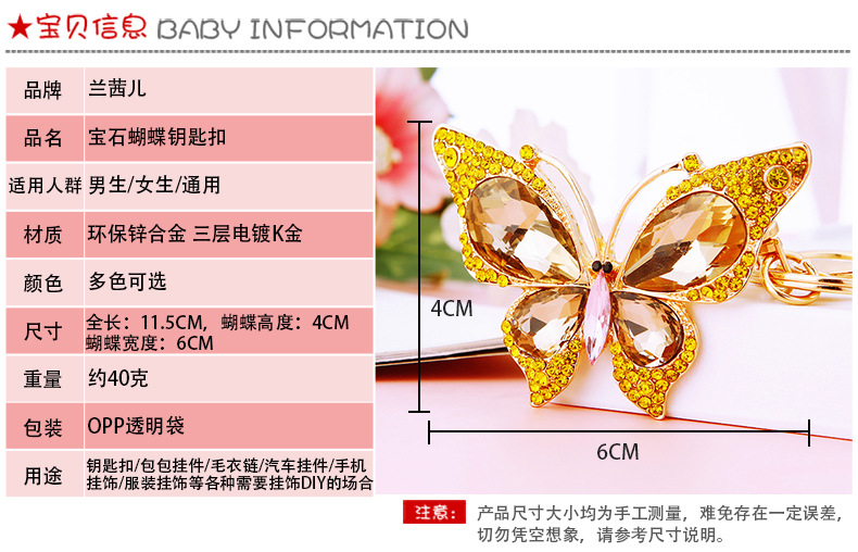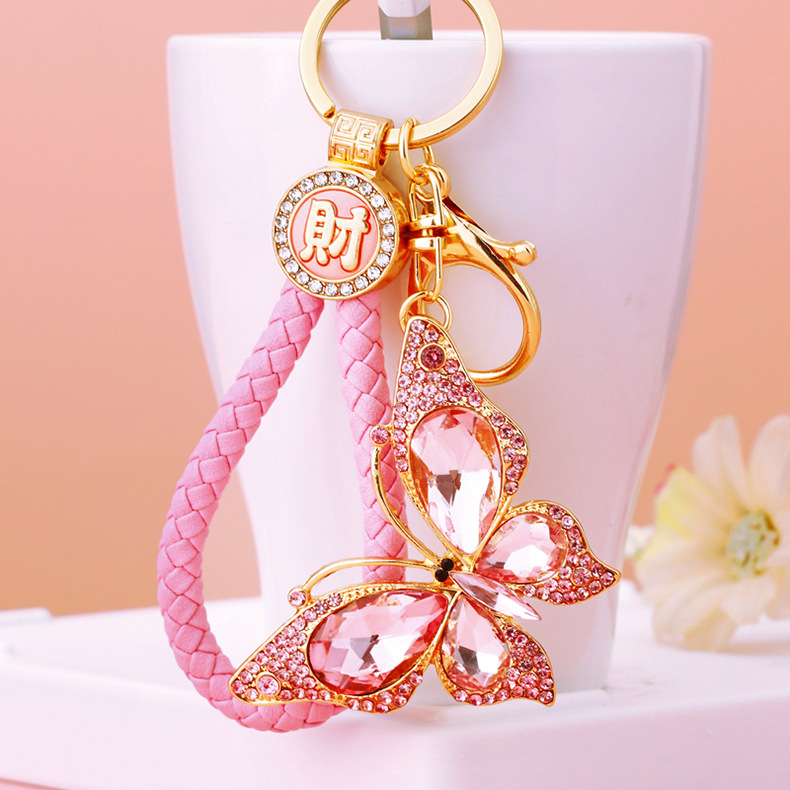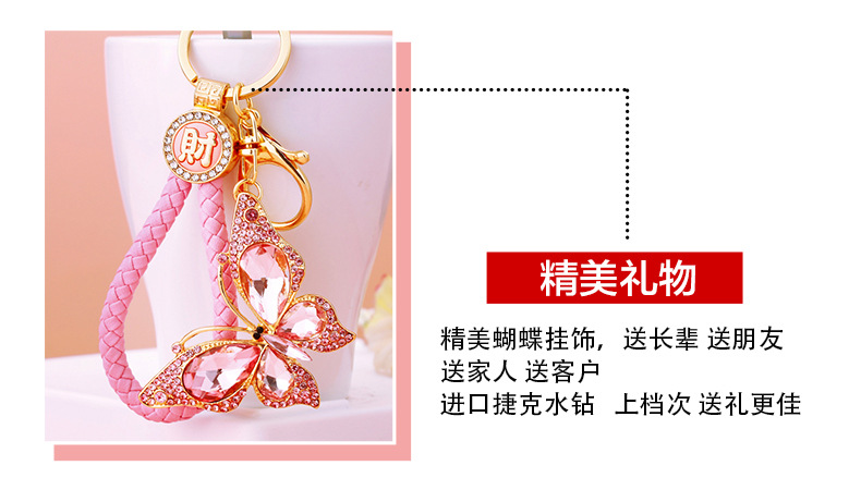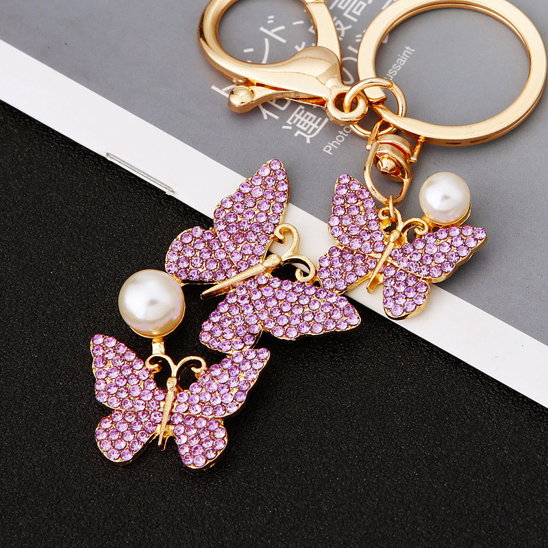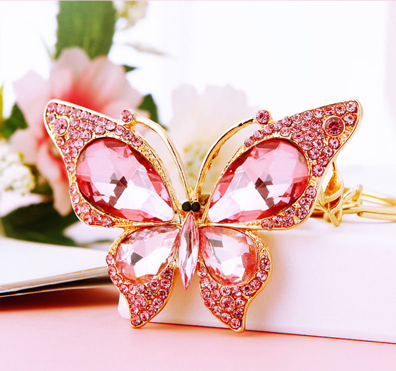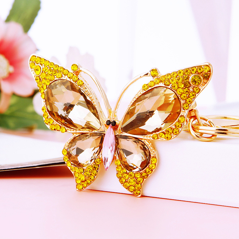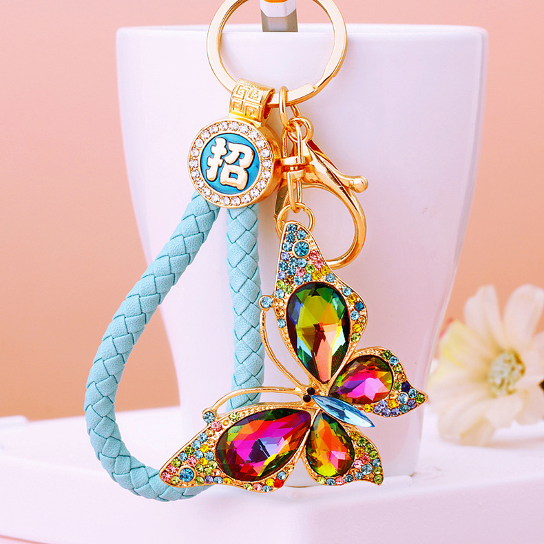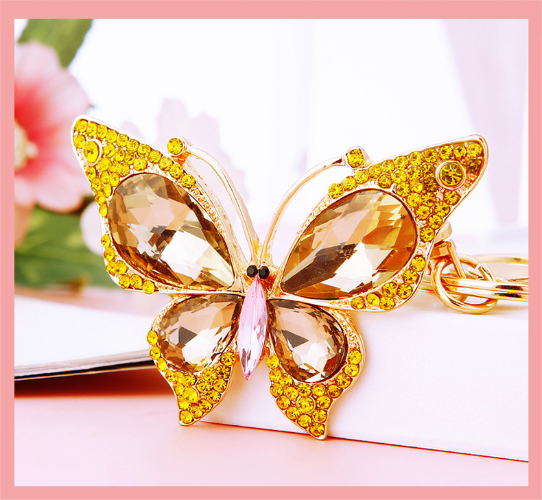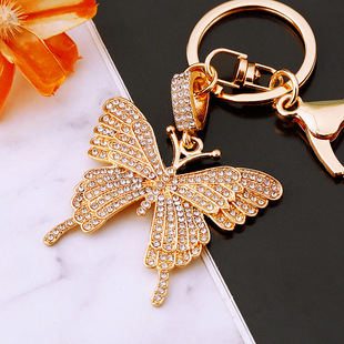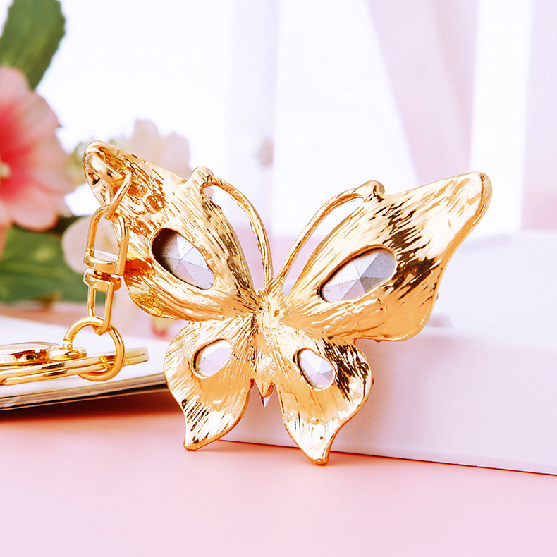 유럽과 미국 다채로운 크리스탈 나비 열쇠 고리 금속 합금 창조적 인 다이아몬드 여자의 가방 펜던트 열쇠 고리 선물