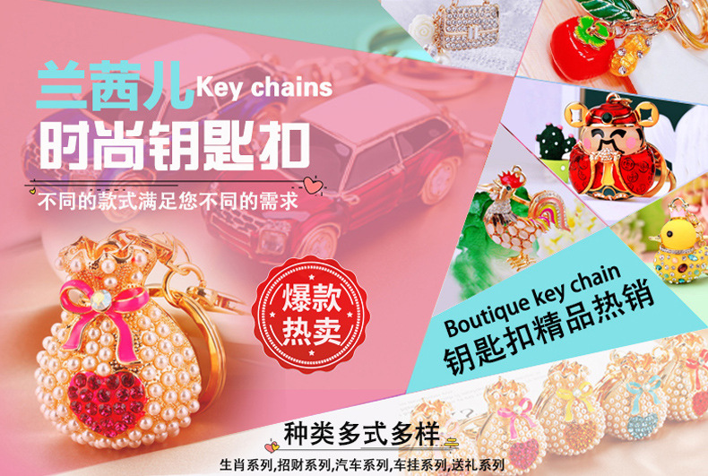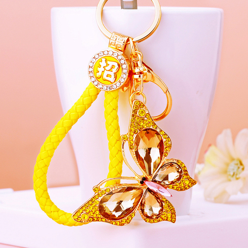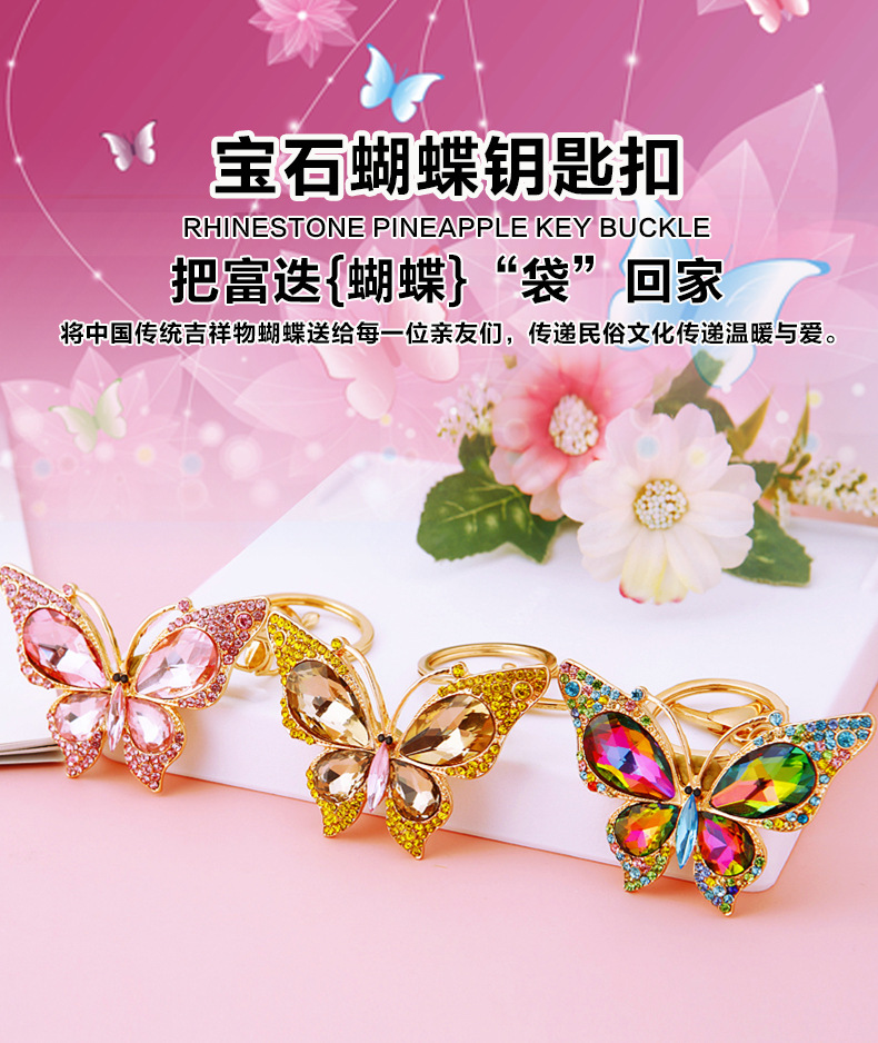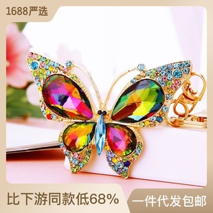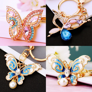 유럽과 미국 다채로운 크리스탈 나비 열쇠 고리 금속 합금 창조적 인 다이아몬드 여자의 가방 펜던트 열쇠 고리 선물스토어 가기