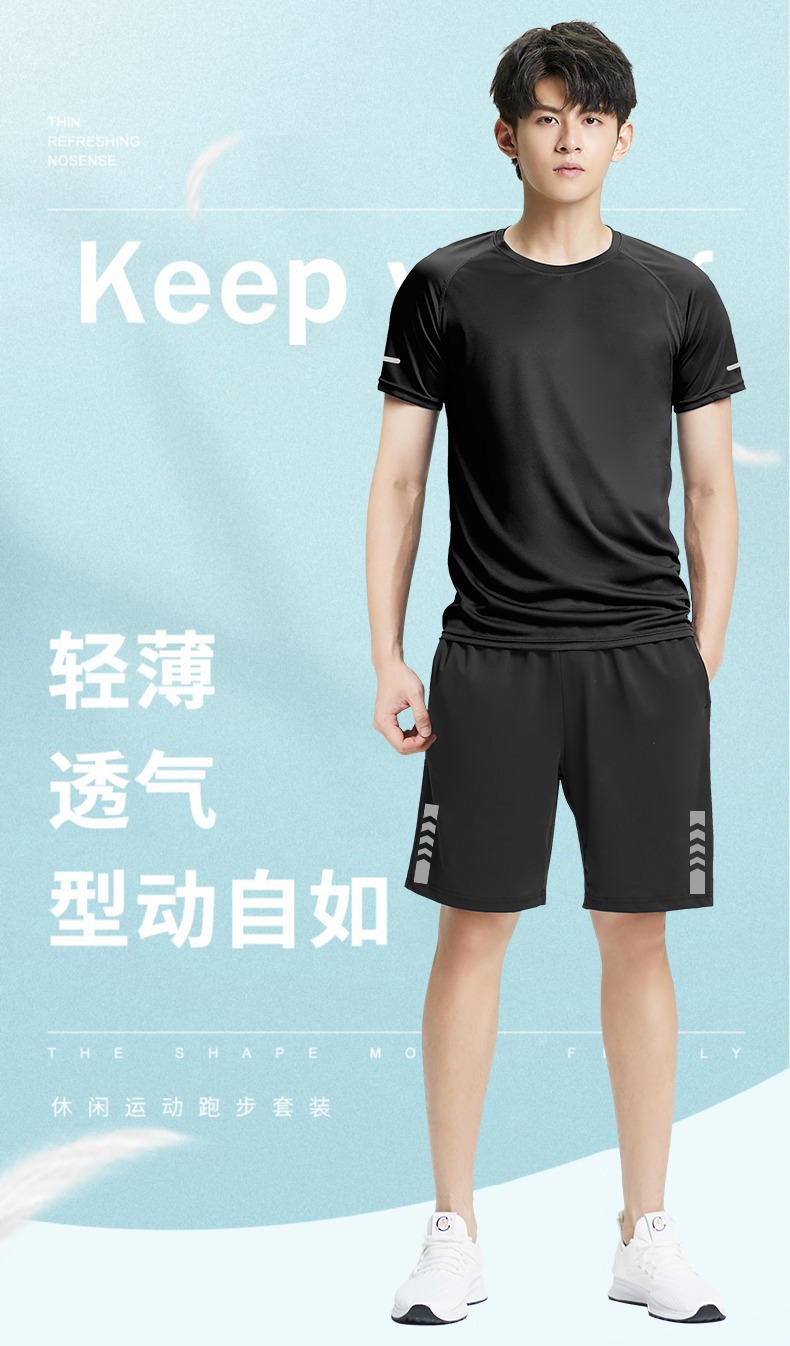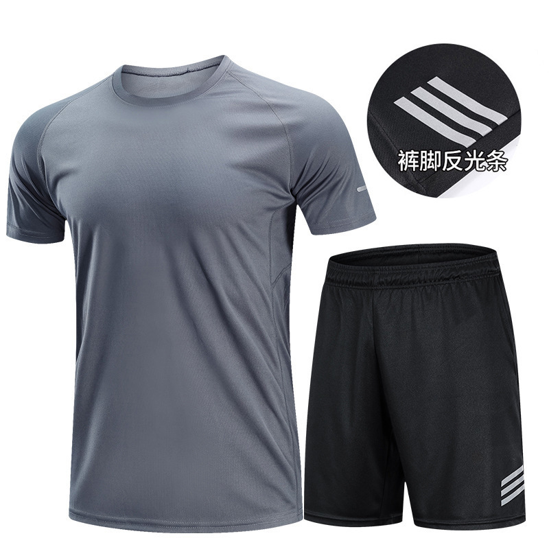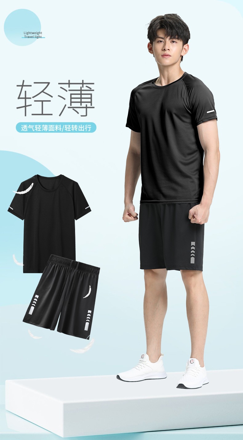 스포츠 세트 남자의 여름 달리기 장비 속건 옷 반팔 티셔츠 조끼 아이스 실크 농구 훈련 피트니스 의류