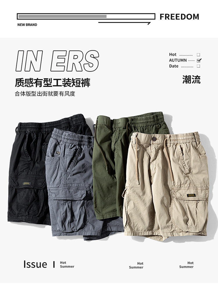 남자 여름 새로운 미국 스타일 레트로 스트레치 멀티 포켓 툴링 반바지 아마존 065