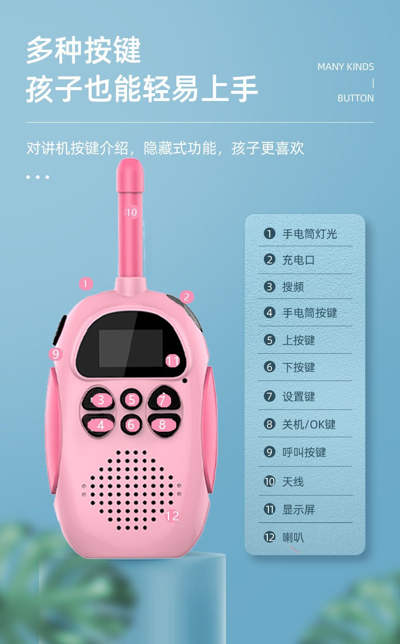 국경 간 새로운 어린이 무전기 핸드 헬드 무선 3km 부모-자식 대화 형 장난감 선물 블루투스 제조 업체 도매