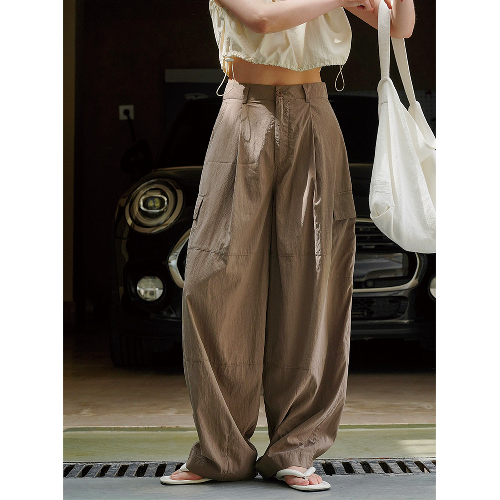 루푸 여름 새로운 일본 스타일 스트리트 유행 멋진 와이드 레그 커버 여성용 하이 웨이스트 슬리밍 캐주얼 자외선 차단제 바지