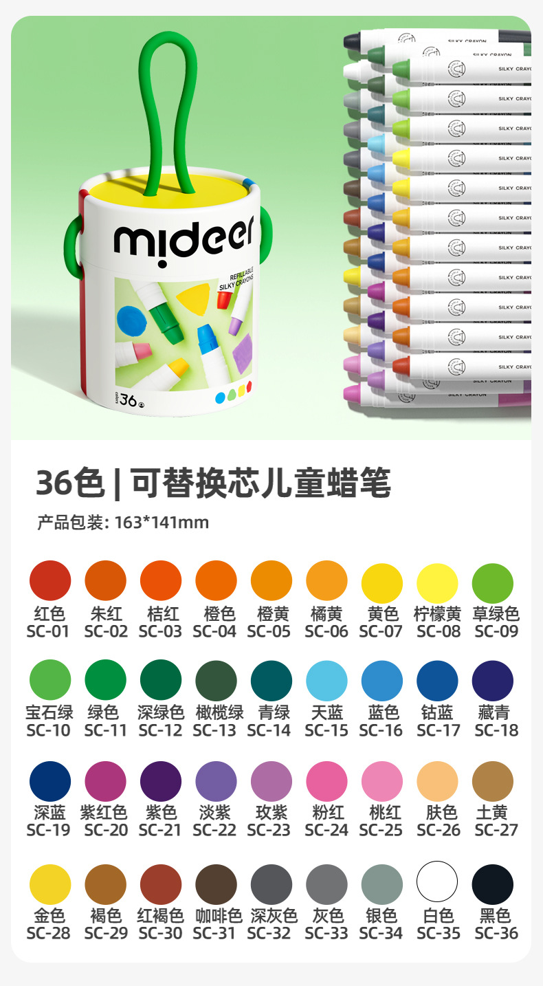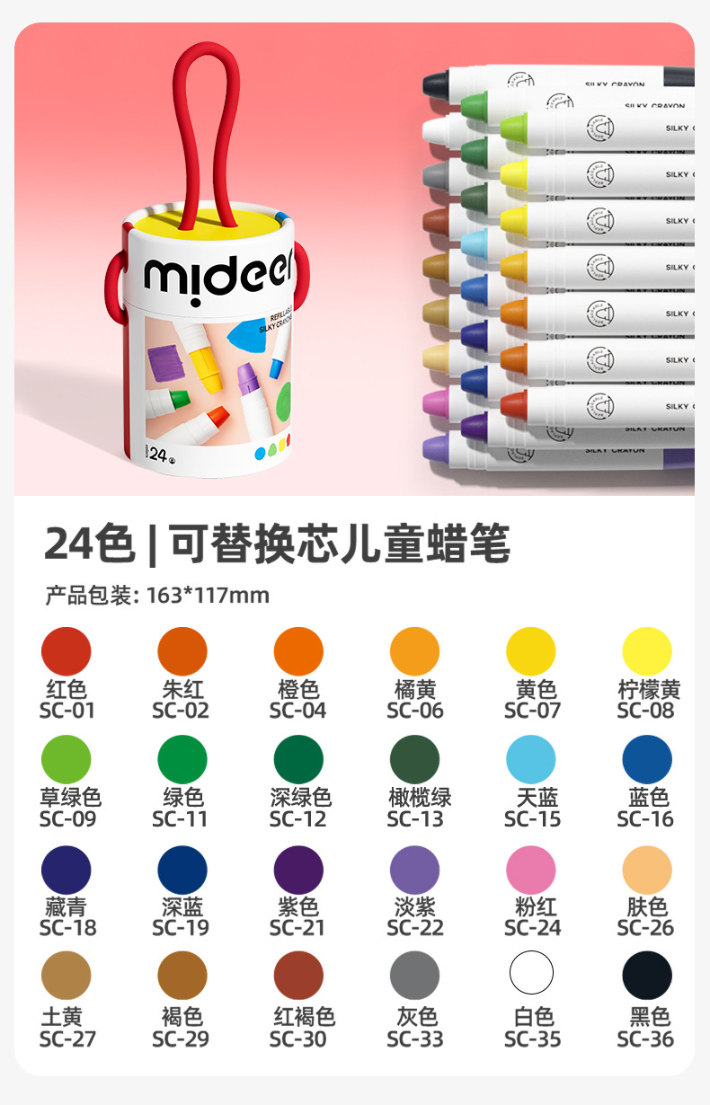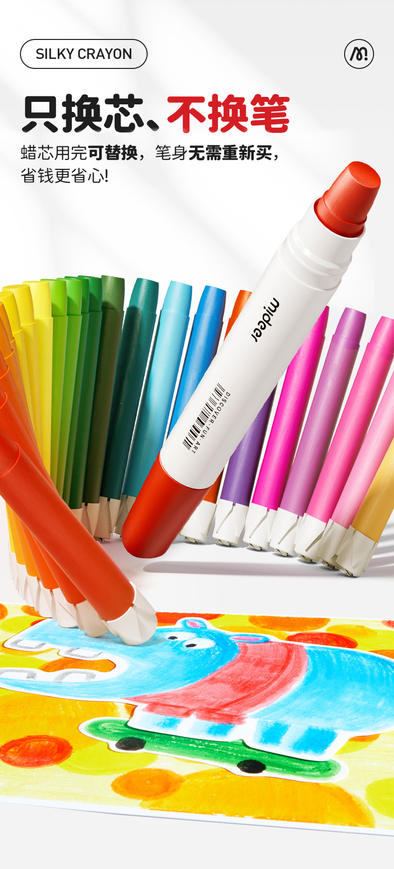 Mider Milu 실크 속건 크레용 유화 스틱 빨 어린이 브러시 유치원 배럴 다채로운 펜