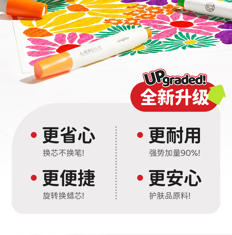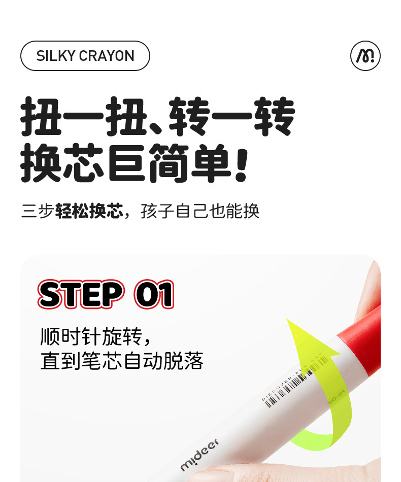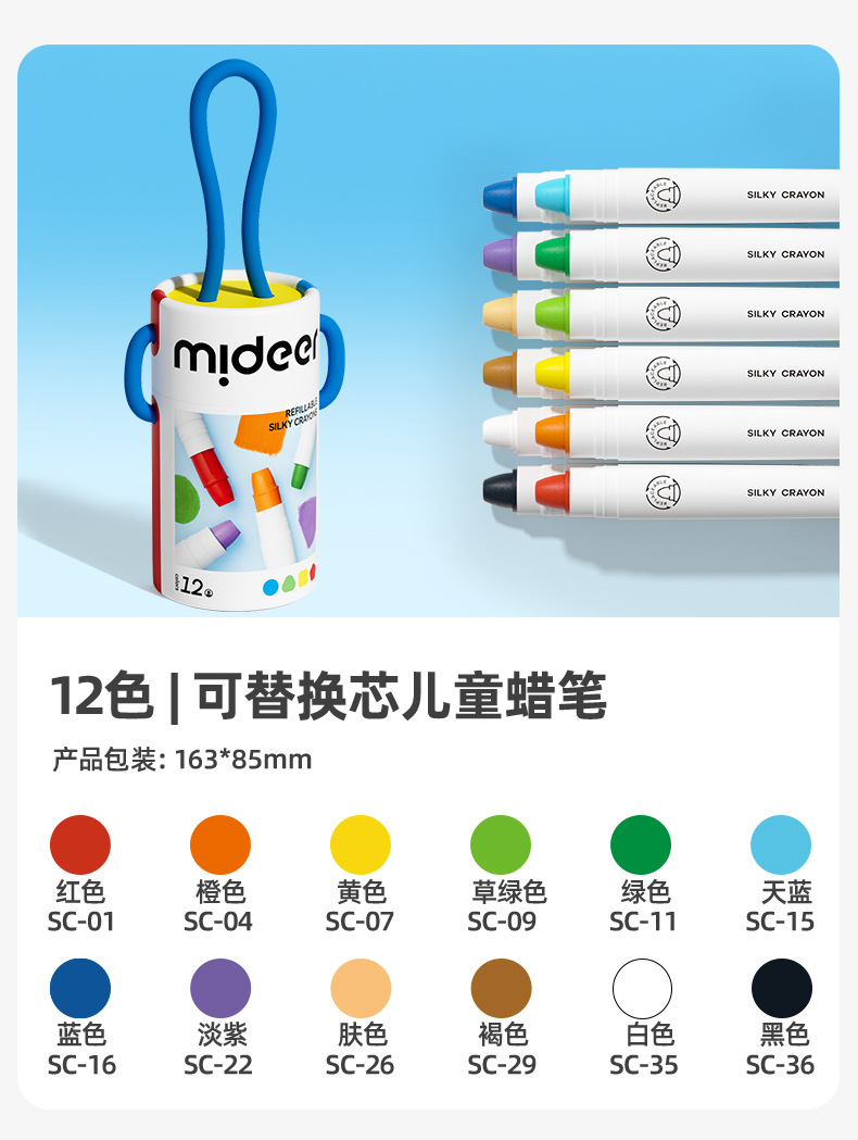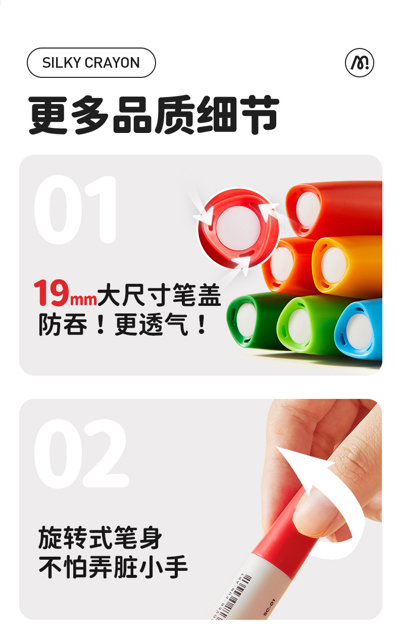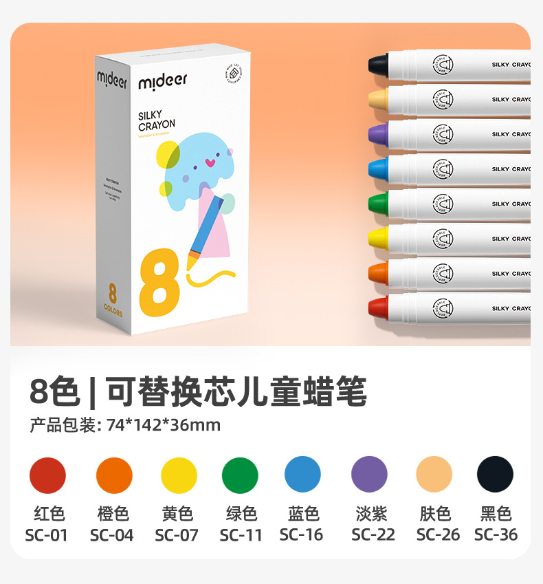 Mider Milu 실크 속건 크레용 유화 스틱 빨 어린이 브러시 유치원 배럴 다채로운 펜