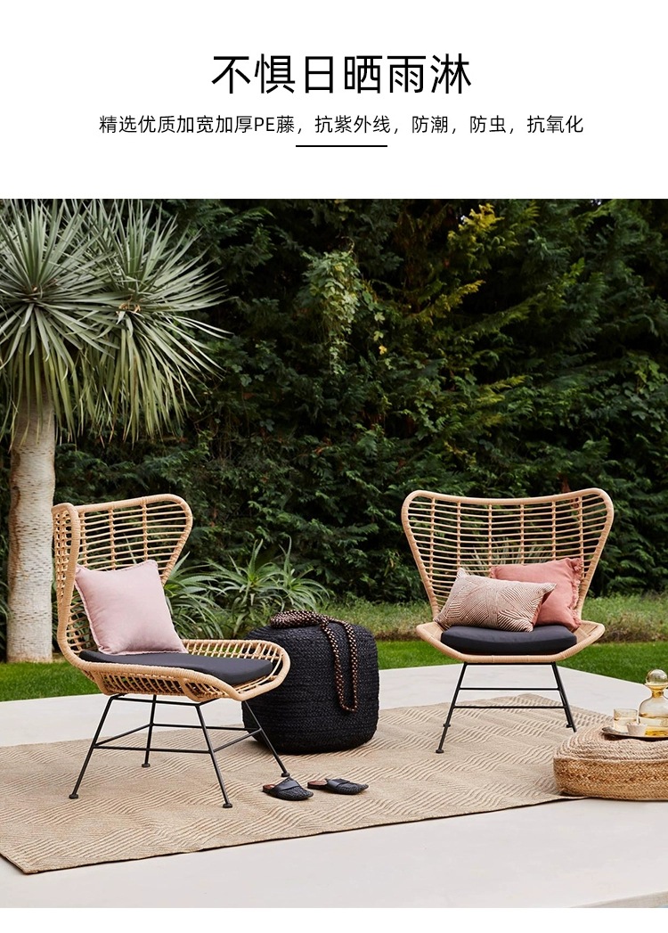 야외 코트야드 등나무 식탁 및 의자 홈스테이 레저 가구 발코니 부드러운 디자인 등나무 의자 차 테이블 3 종 세트