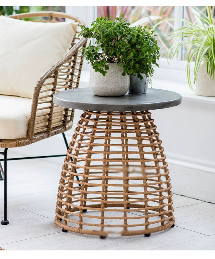 야외 코트야드 등나무 식탁 및 의자 홈스테이 레저 가구 발코니 부드러운 디자인 등나무 의자 차 테이블 3 종 세트스토어 가기