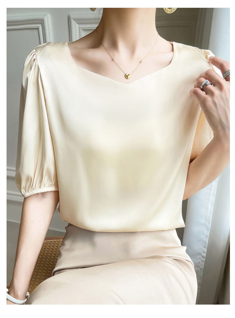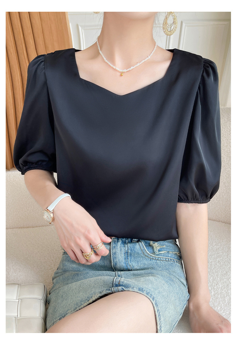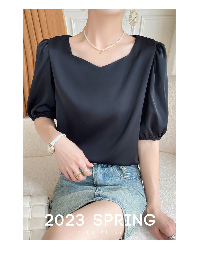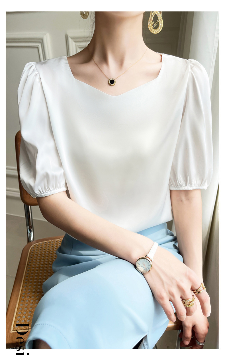 쉬폰 셔츠 여성용 티셔츠 2023 새로운 여름 아름다운 탑 하이 엔드 디자인 센스 틈새 티셔츠 반소매