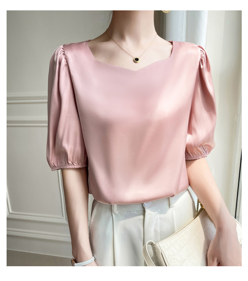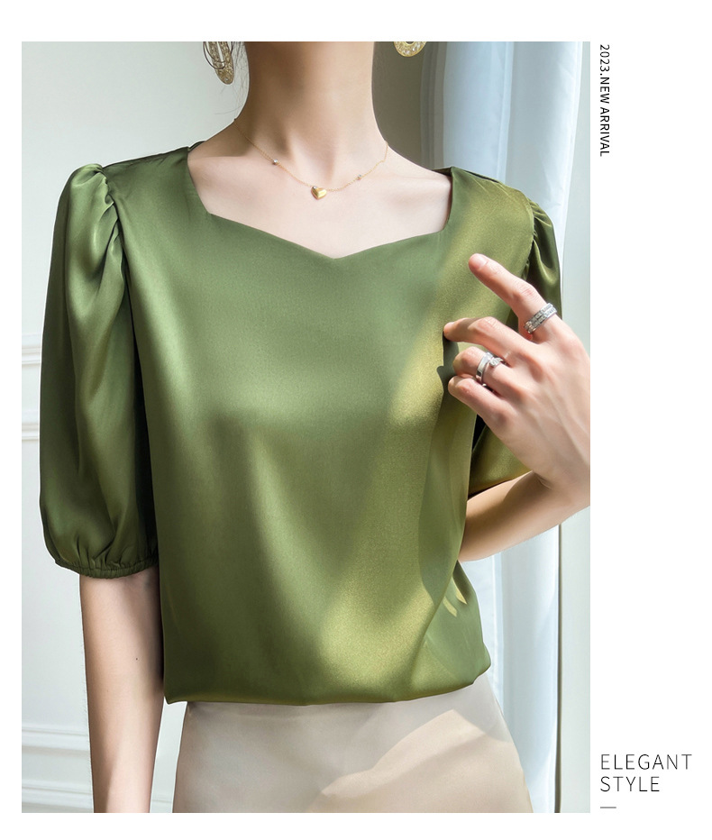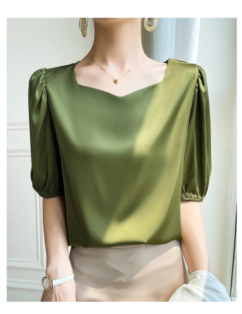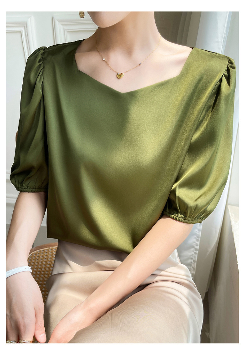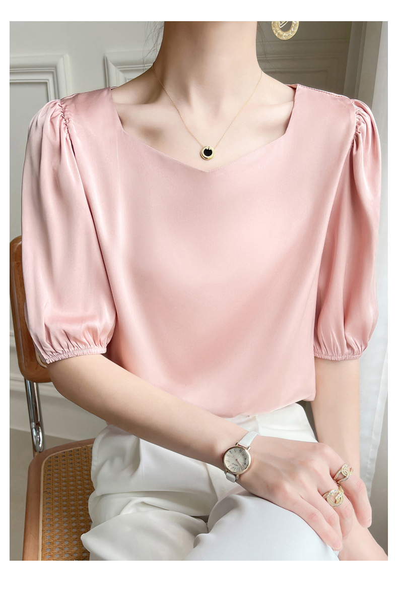 쉬폰 셔츠 여성용 티셔츠 2023 새로운 여름 아름다운 탑 하이 엔드 디자인 센스 틈새 티셔츠 반소매