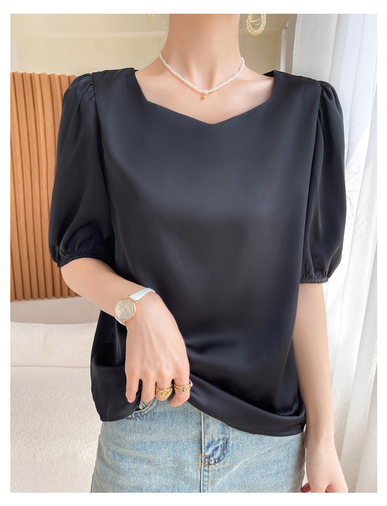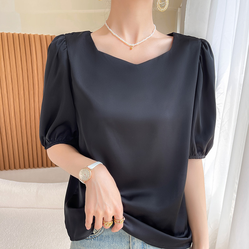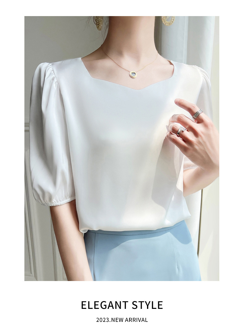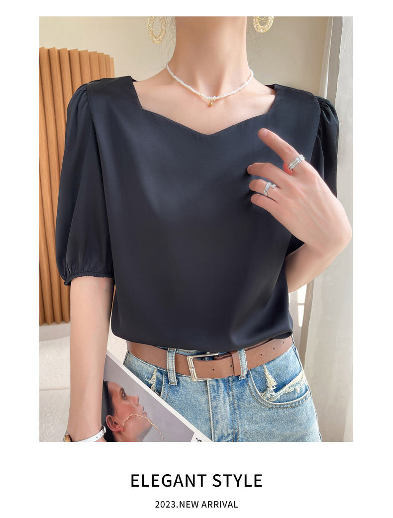 쉬폰 셔츠 여성용 티셔츠 2023 새로운 여름 아름다운 탑 하이 엔드 디자인 센스 틈새 티셔츠 반소매스토어 가기