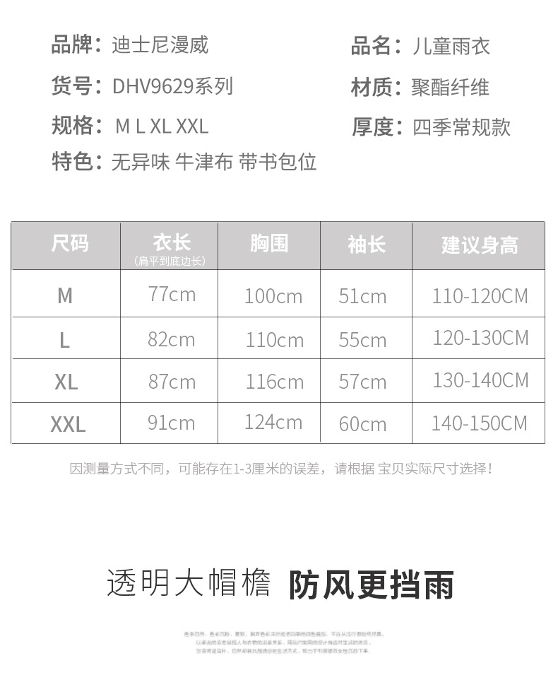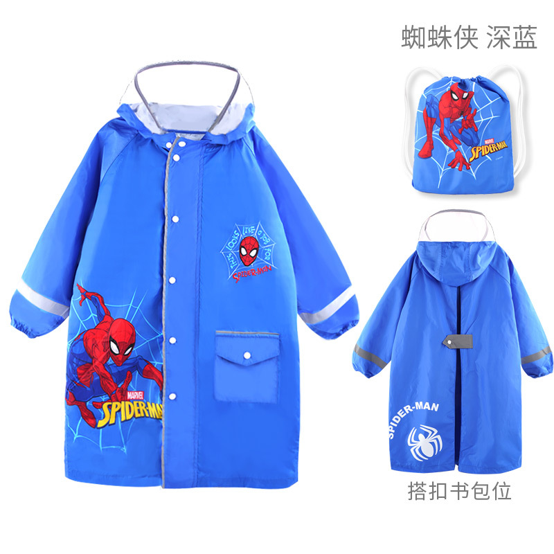 디즈니 어린이 레인코트 소년 학교 가방 스파이더 맨 판초 마블 큰 모자 챙 유치원 레인 기어 학생