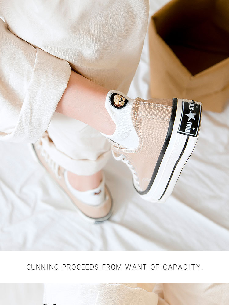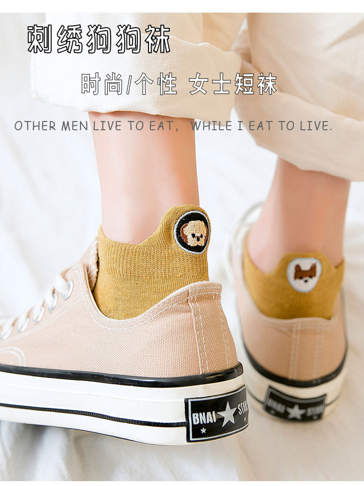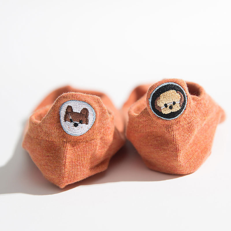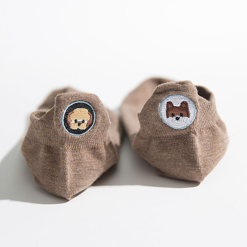 봄과 여름 새로운 스타일 독특한 여성 양말 수 놓은 발 뒤꿈치 개 여성용 보트 양말 한국식 양말에 일본식스토어 가기