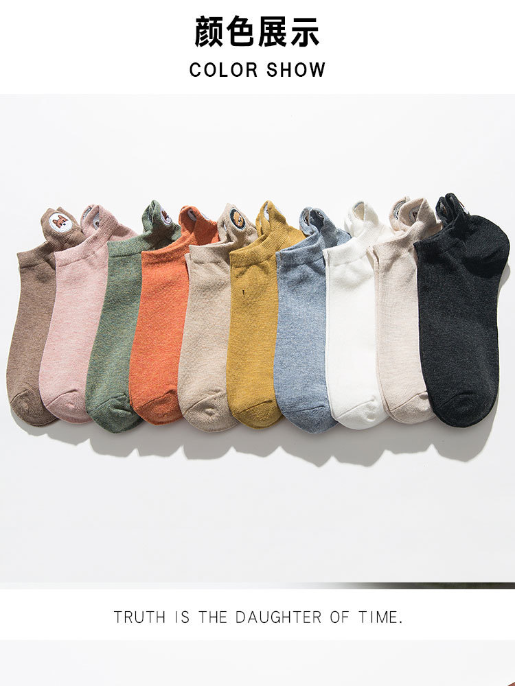 봄과 여름 새로운 스타일 독특한 여성 양말 수 놓은 발 뒤꿈치 개 여성용 보트 양말 한국식 양말에 일본식