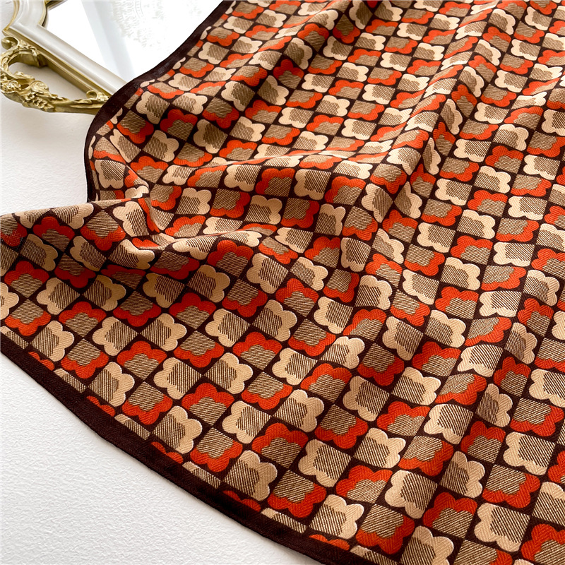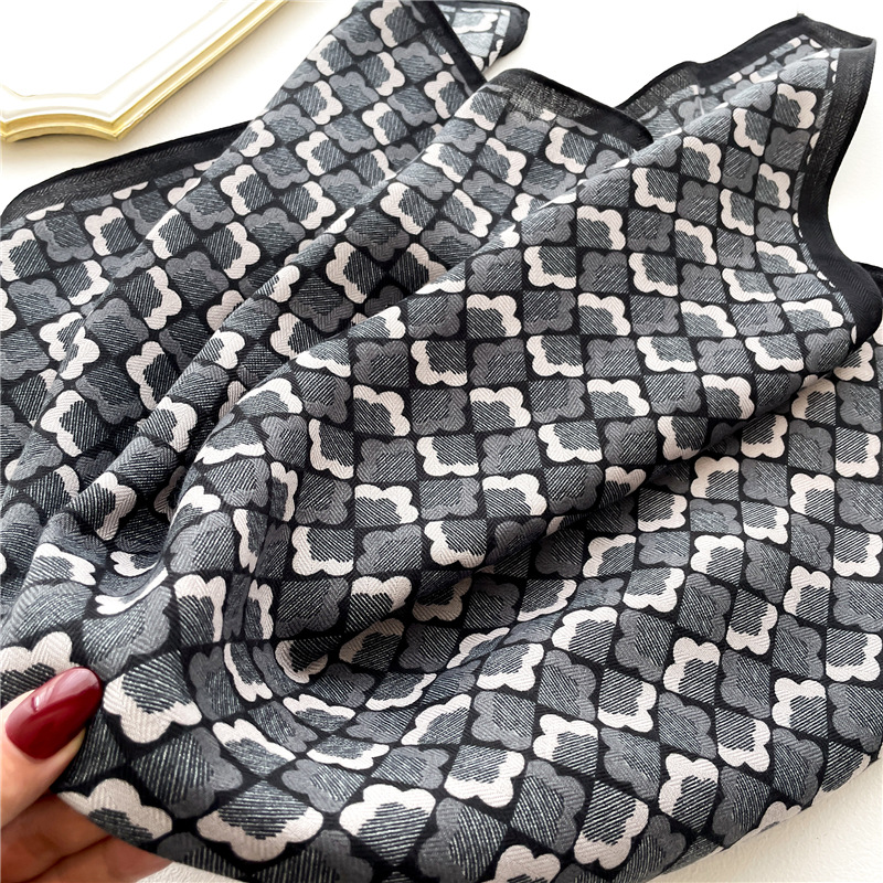 꽃무늬 체크 스카프 여성용 얇은 헤링본 패턴 면마 느낌 인조 벨벳 숄 스카프 머리 스카프