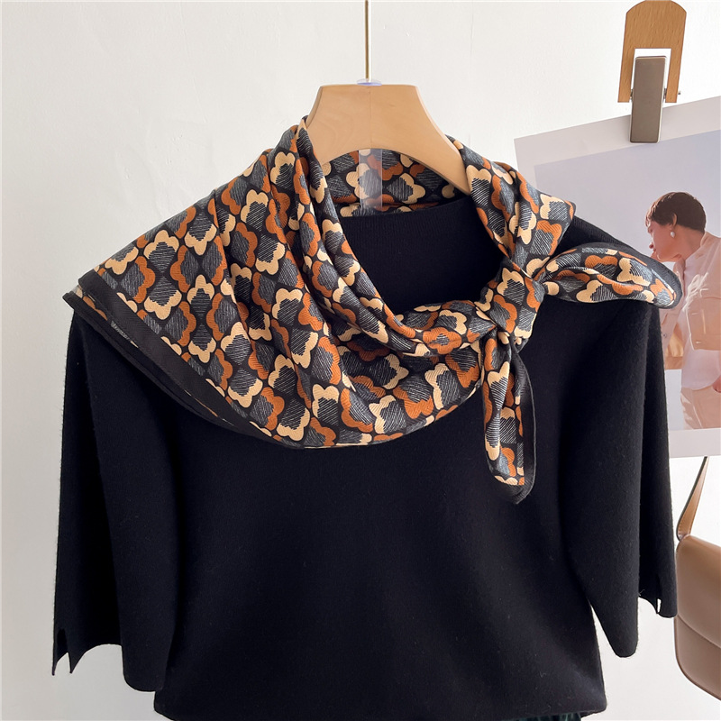 꽃무늬 체크 스카프 여성용 얇은 헤링본 패턴 면마 느낌 인조 벨벳 숄 스카프 머리 스카프스토어 가기