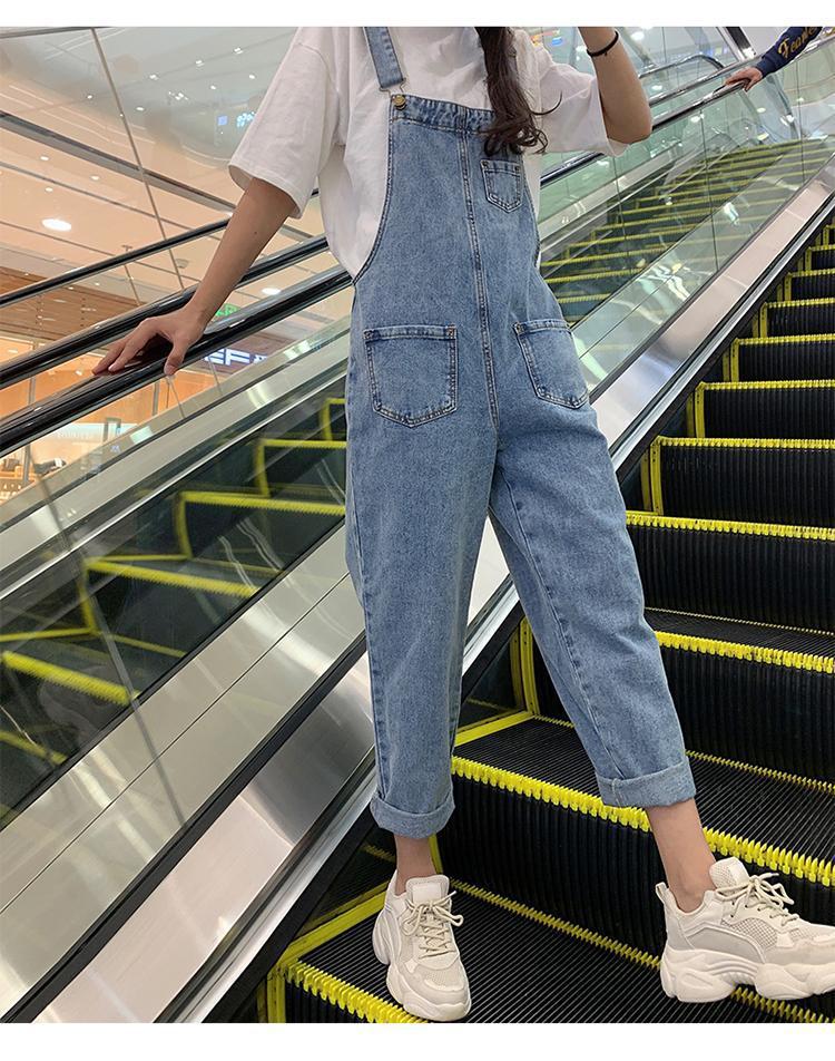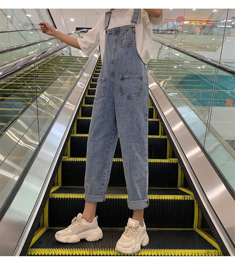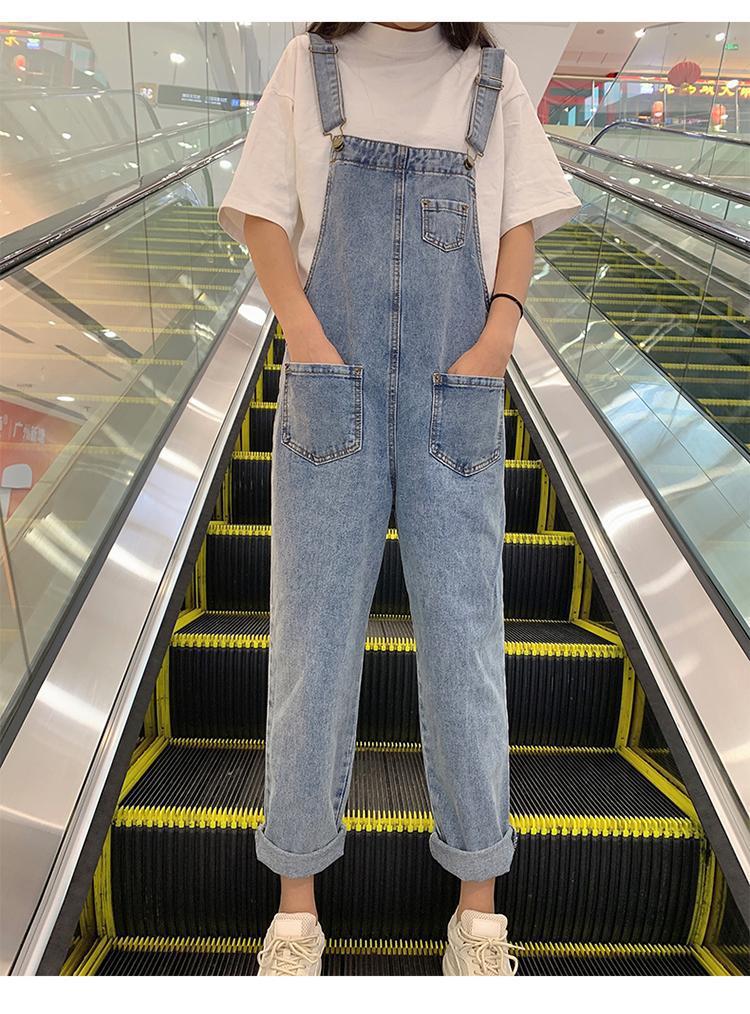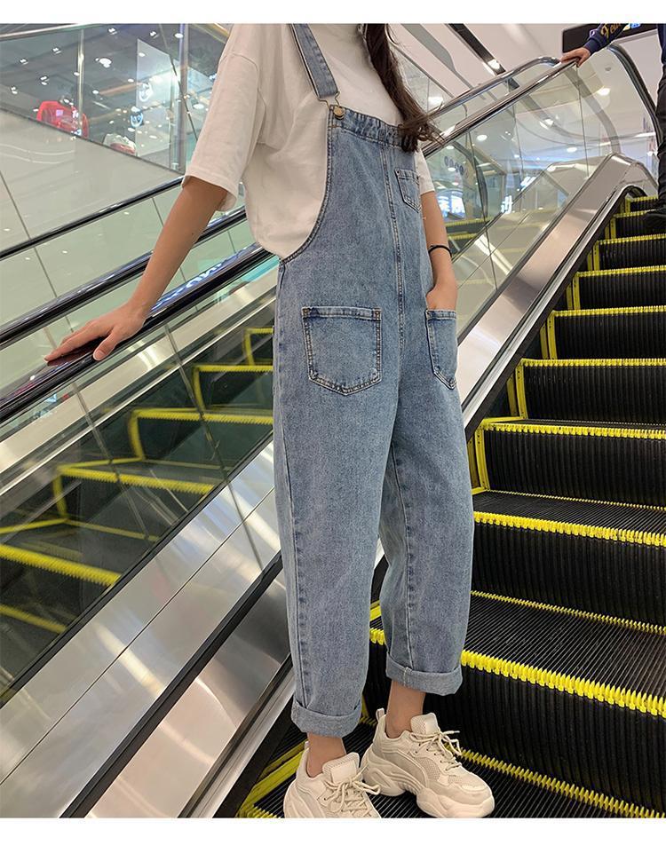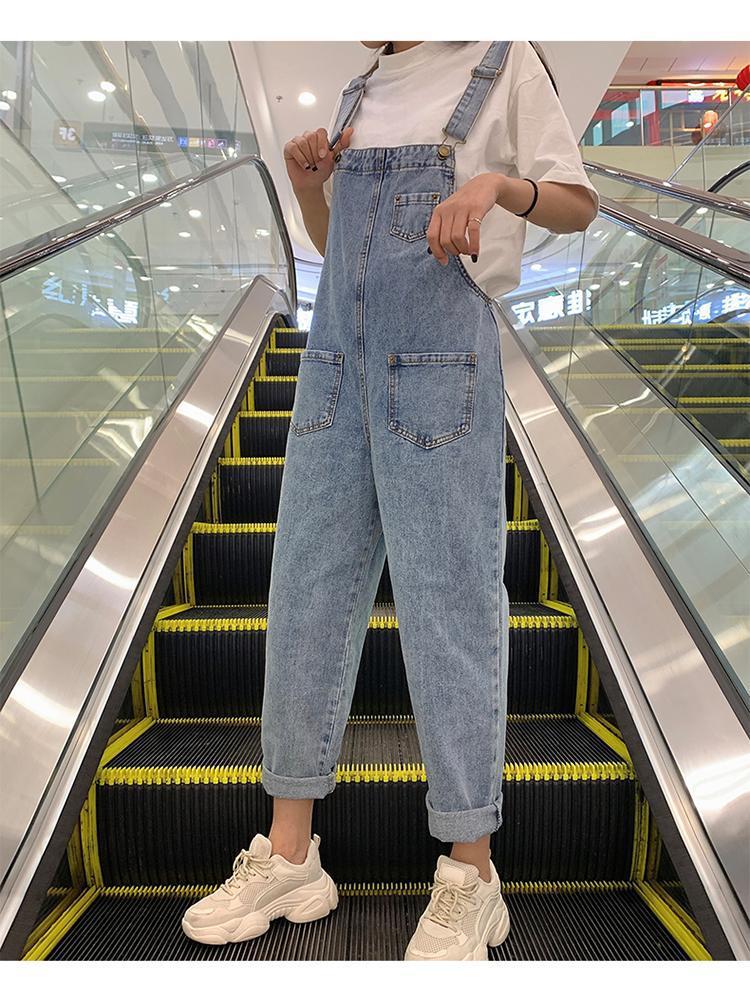 새로운 2024 인터넷 연예인 시대 감소 봄과 여름 서양식 데님 스트랩 팬츠 여성 한국식 니치 올매치 슬림 핏 루즈 트렌디