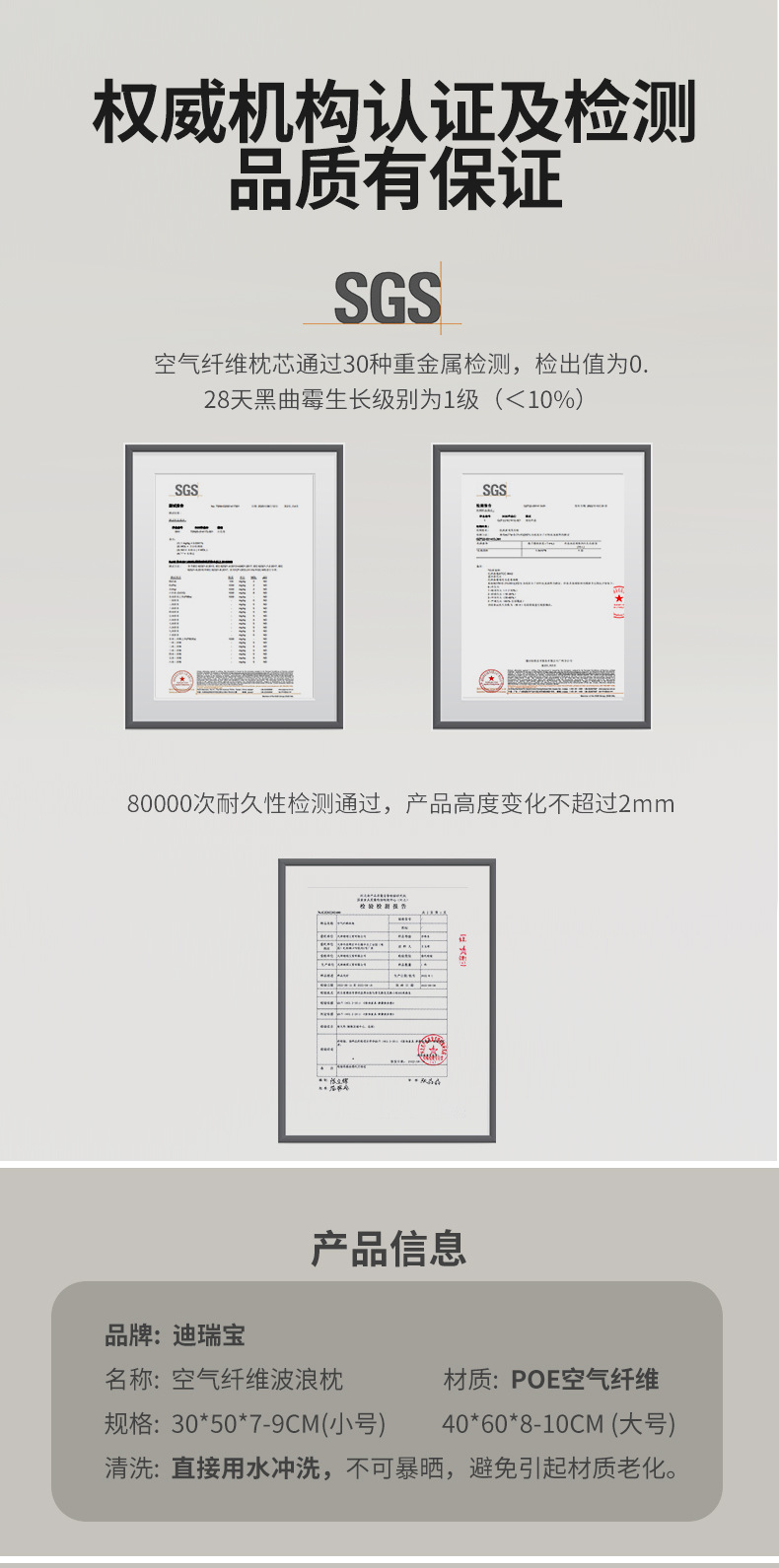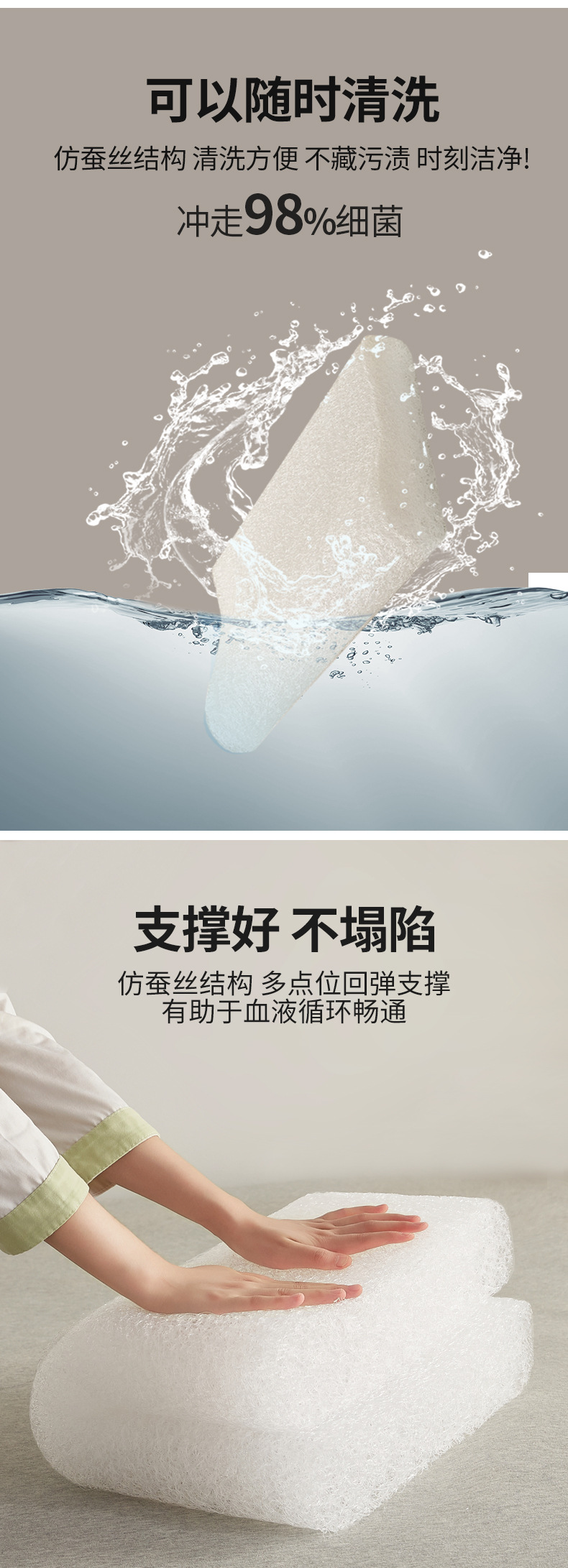 • 물결 모양의 베개 코어(통기성 및 세탁 가능)