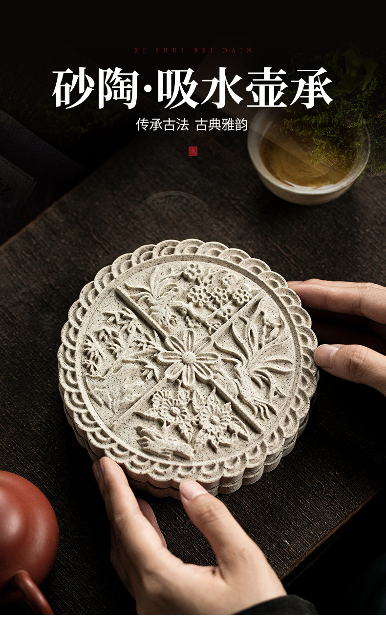 고대 도자기 흡수 석기 냄비 베어링 베고니아 원형 세라믹 주전자 트레이 물 저장 냄비 쿠션 차 트레이 소형 건조 양조 테이블