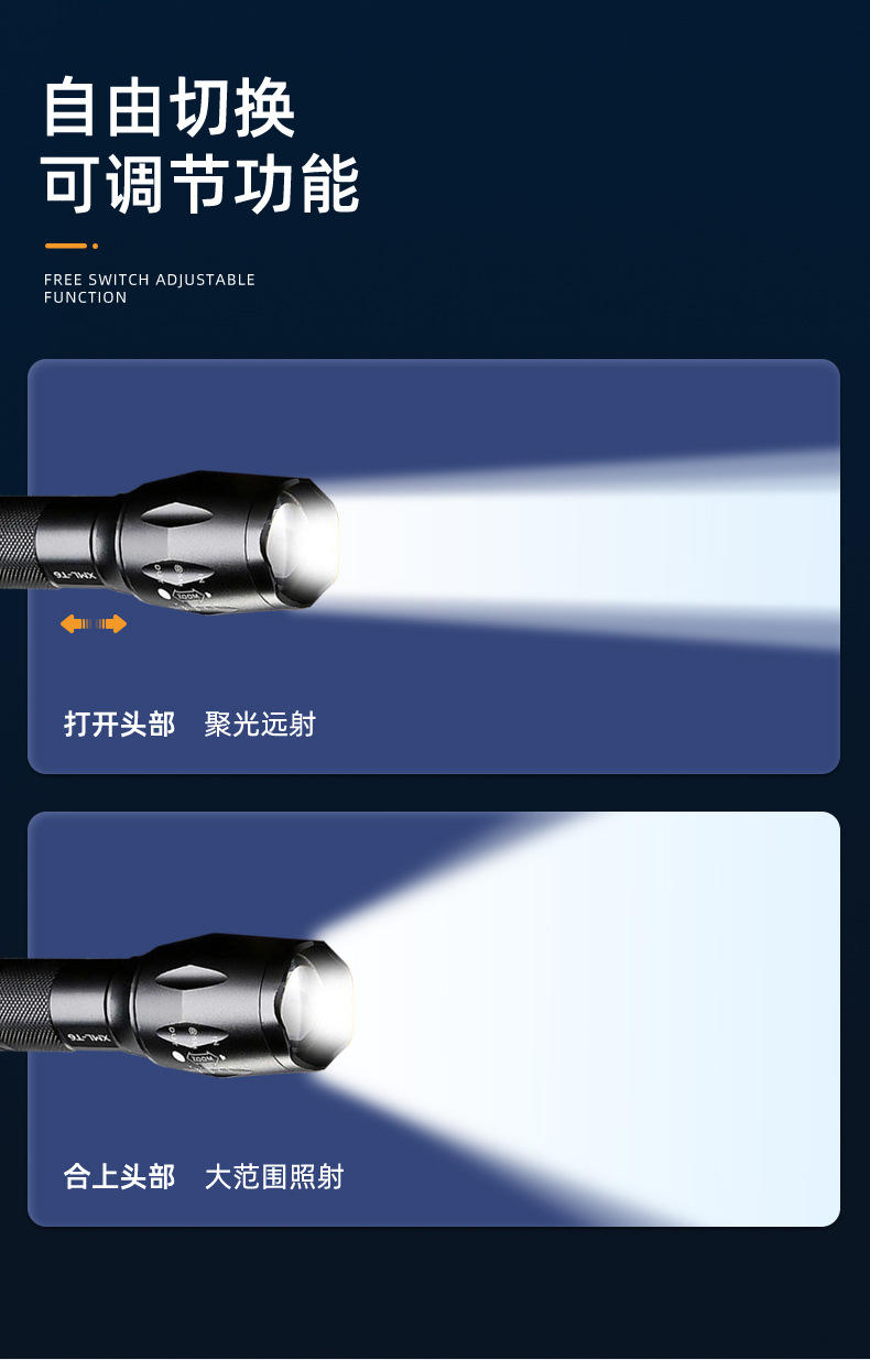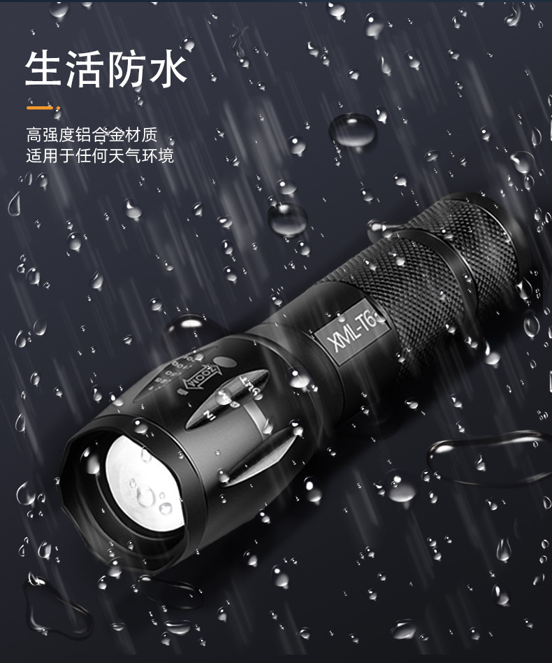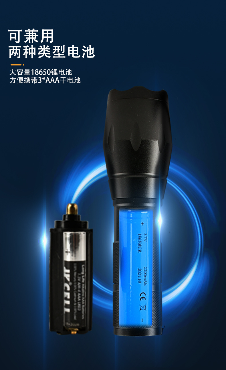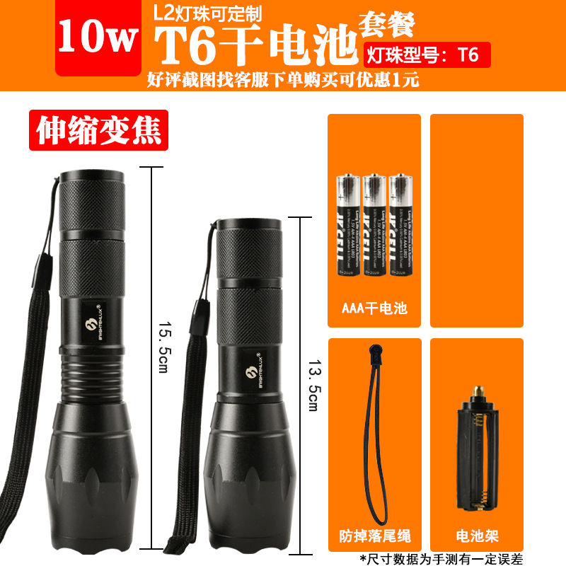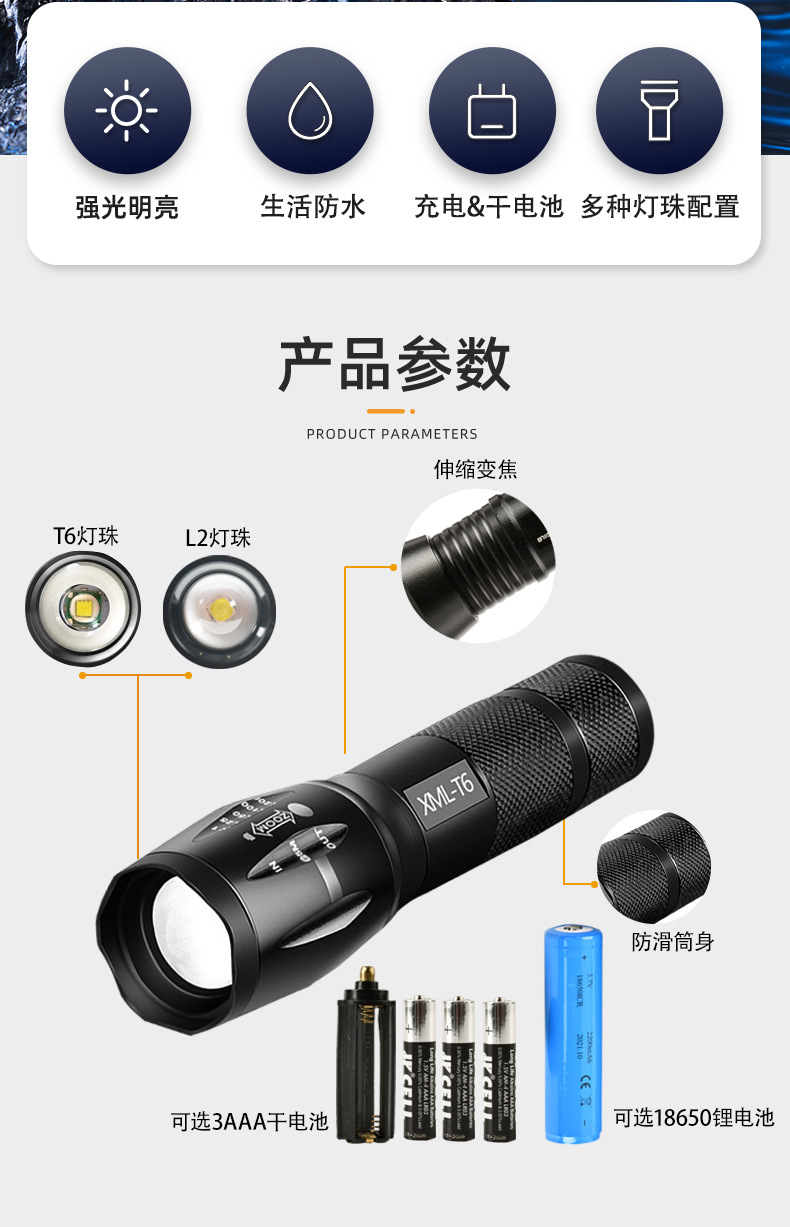 新款多功能迷你便携LED变焦手电筒超亮强光照明户外应急干电手电
