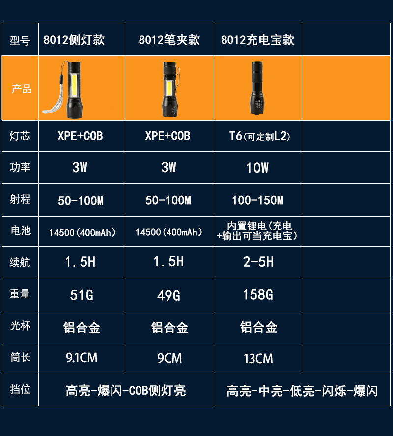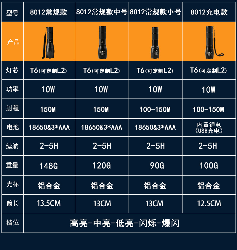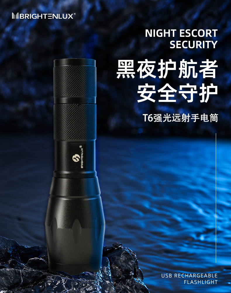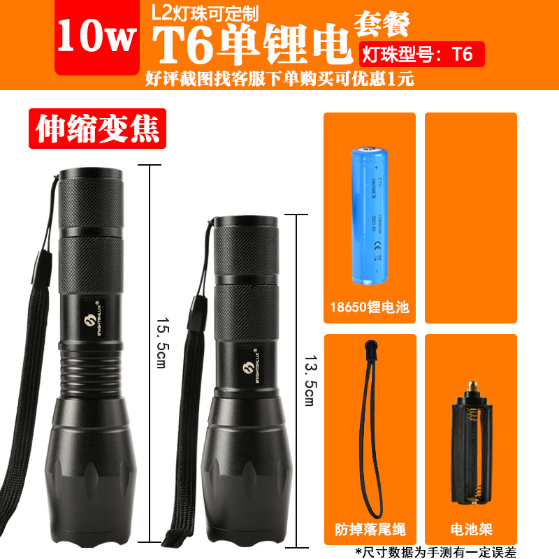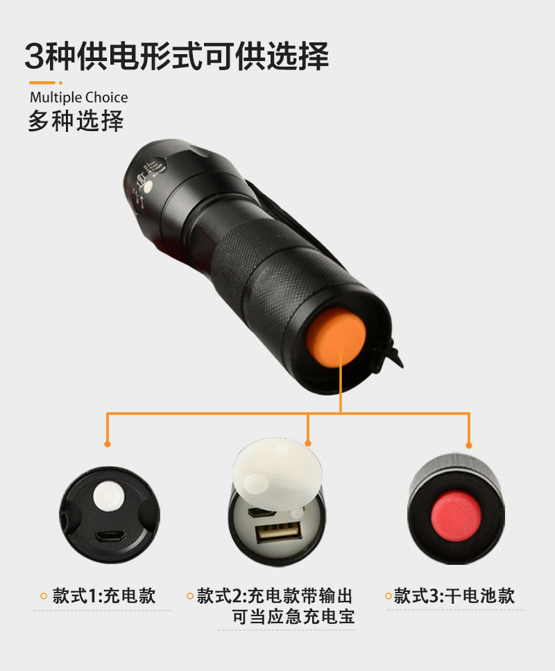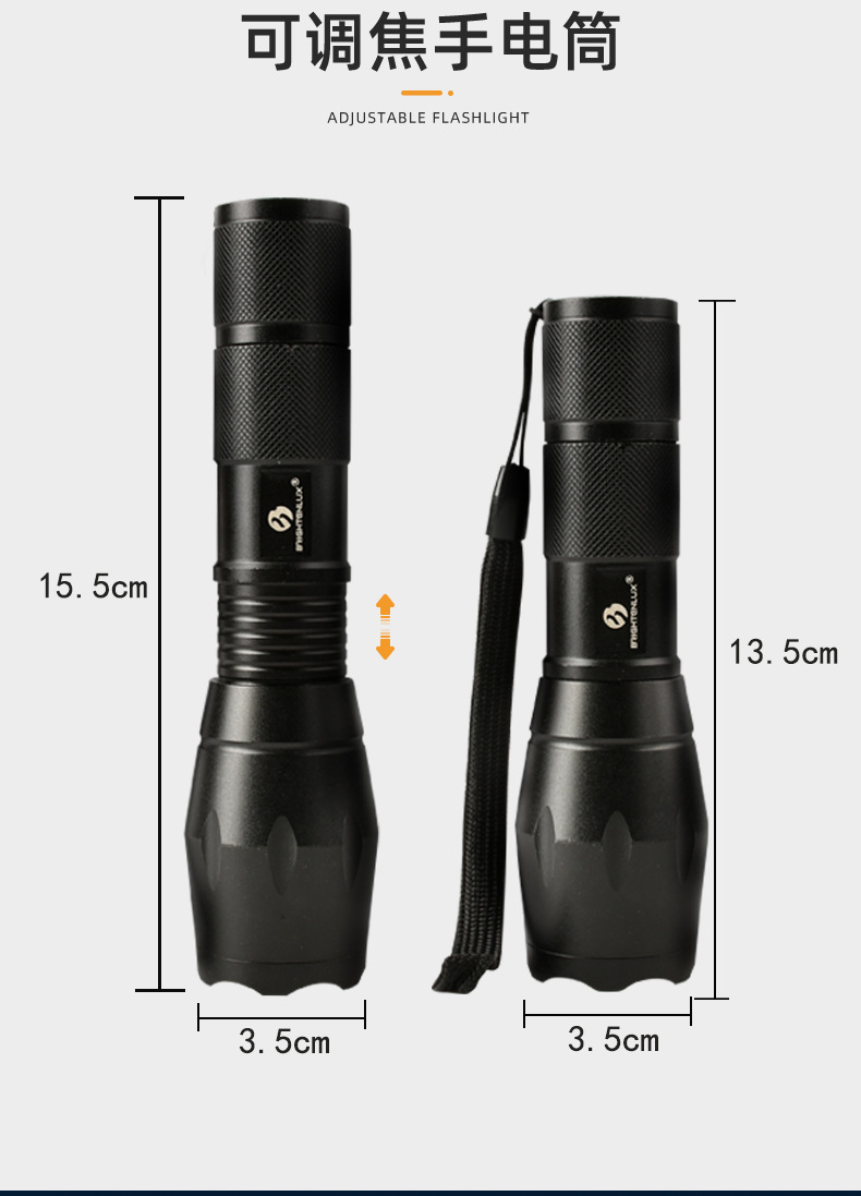 新款多功能迷你便携LED变焦手电筒超亮强光照明户外应急干电手电