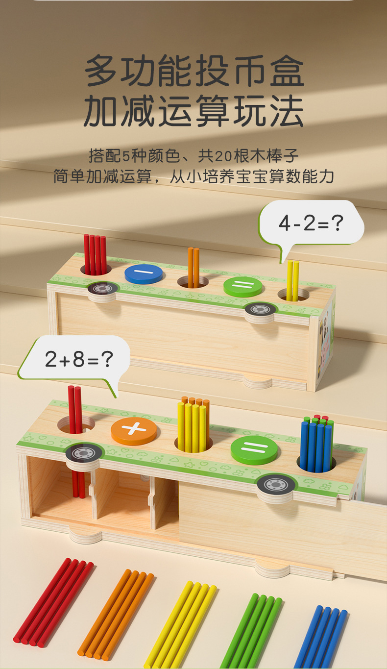 Goryobaby 몬테소리 교육 보조 유아 미세 행동 모양 일치하는 동전 상자 교육 장난감
