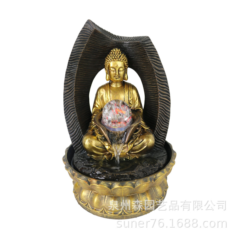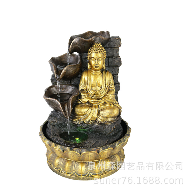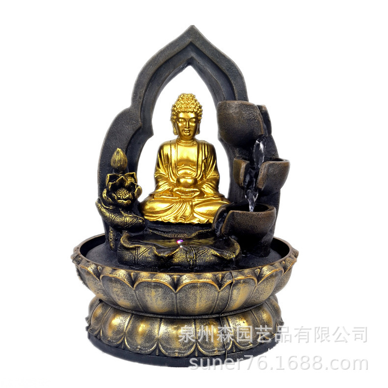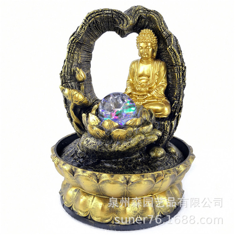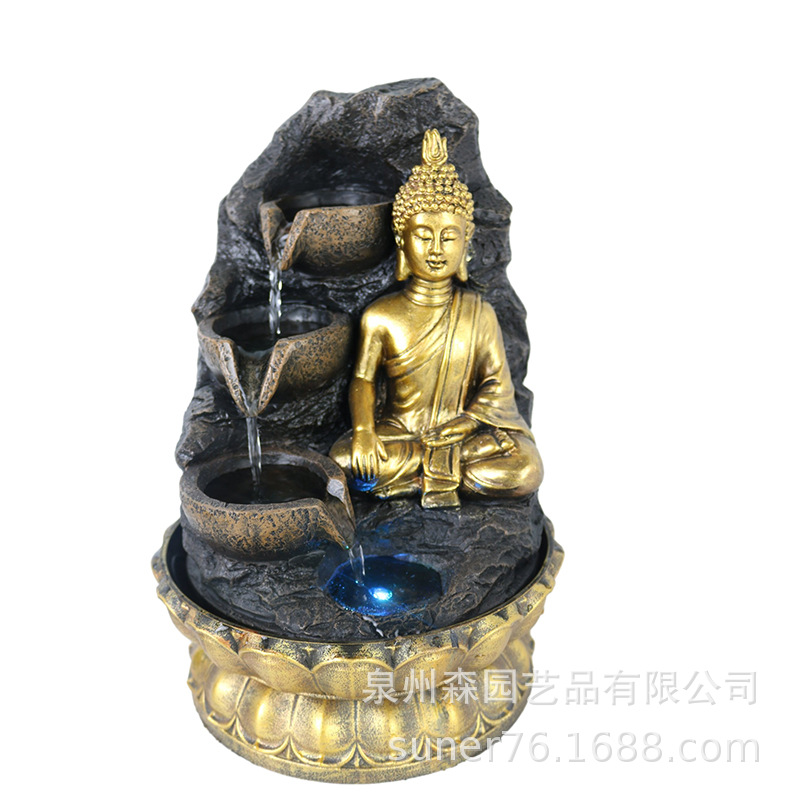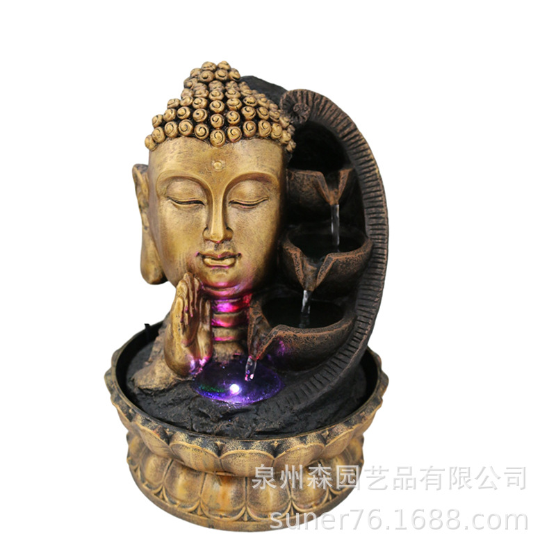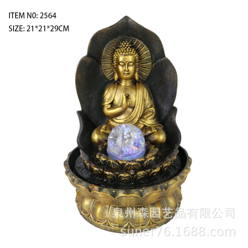 불상 수지 공예 흐르는 물 장식품 실내 책상 가습기 물 순환 분수 장식