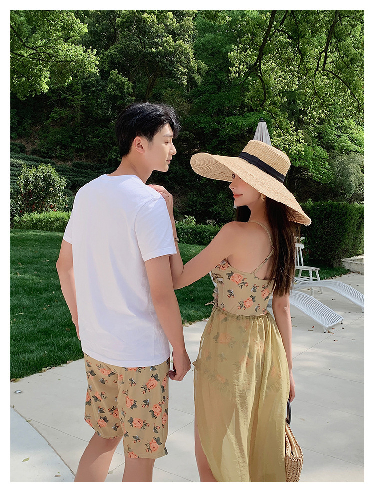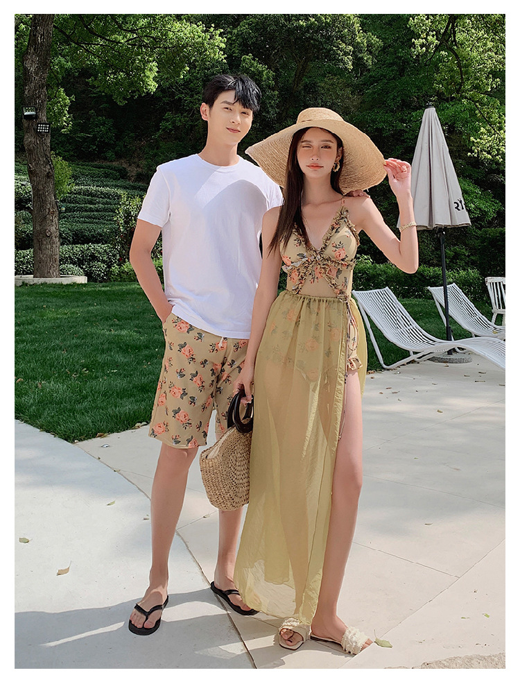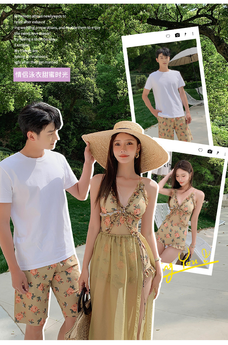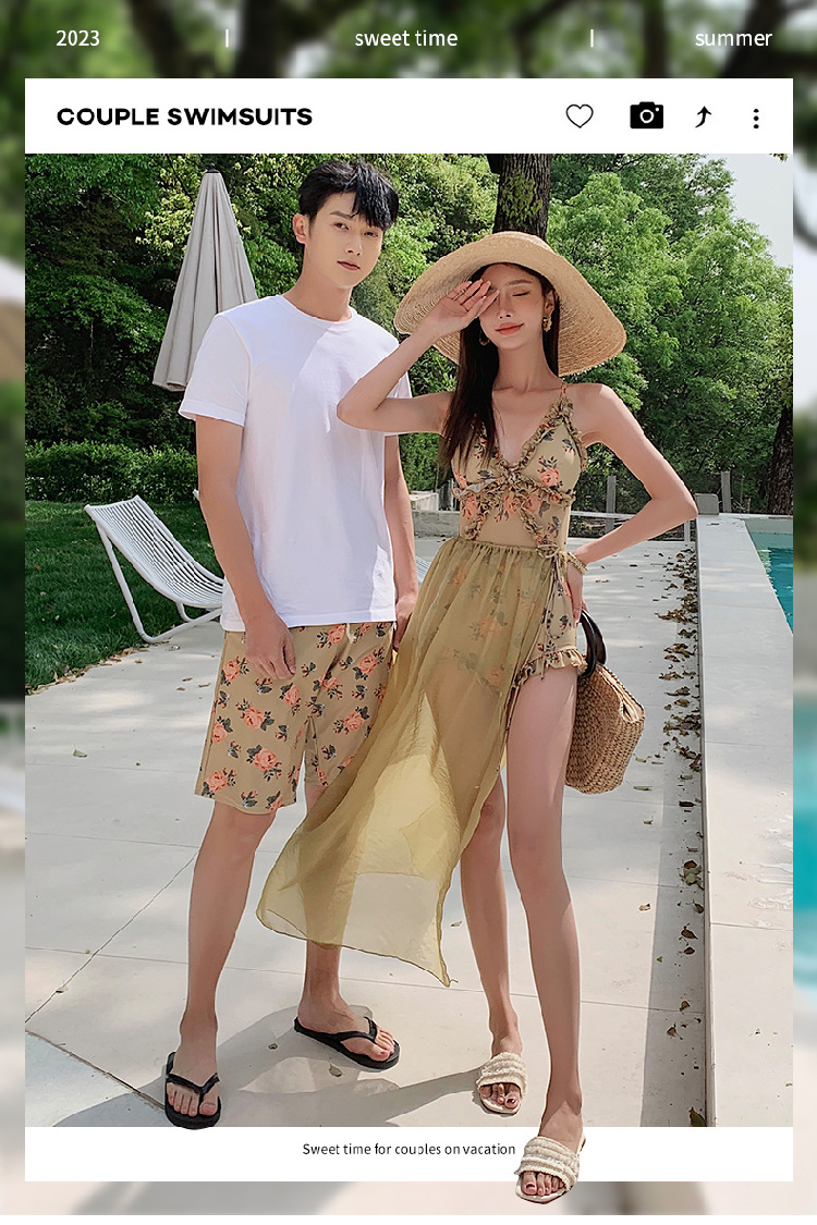 커플 수영복 여성용 원피스 섹시 비키니 온천 수영복 휴가 여행을위한 남성용 비치 팬츠 작은 가슴 모여 슬리밍