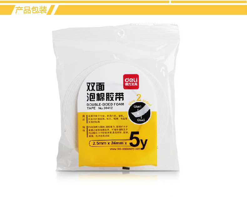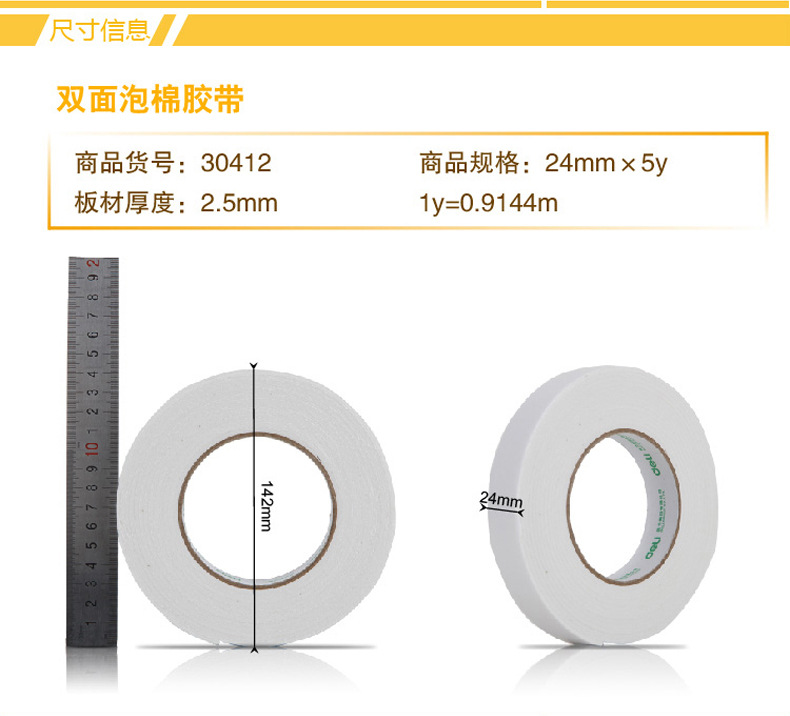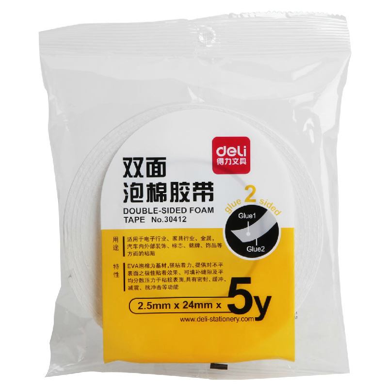 델리 폼 접착제 24mm2.5mm5y 30412 양면 폼 접착제 스폰지 접착제 두꺼운 양면 접착제