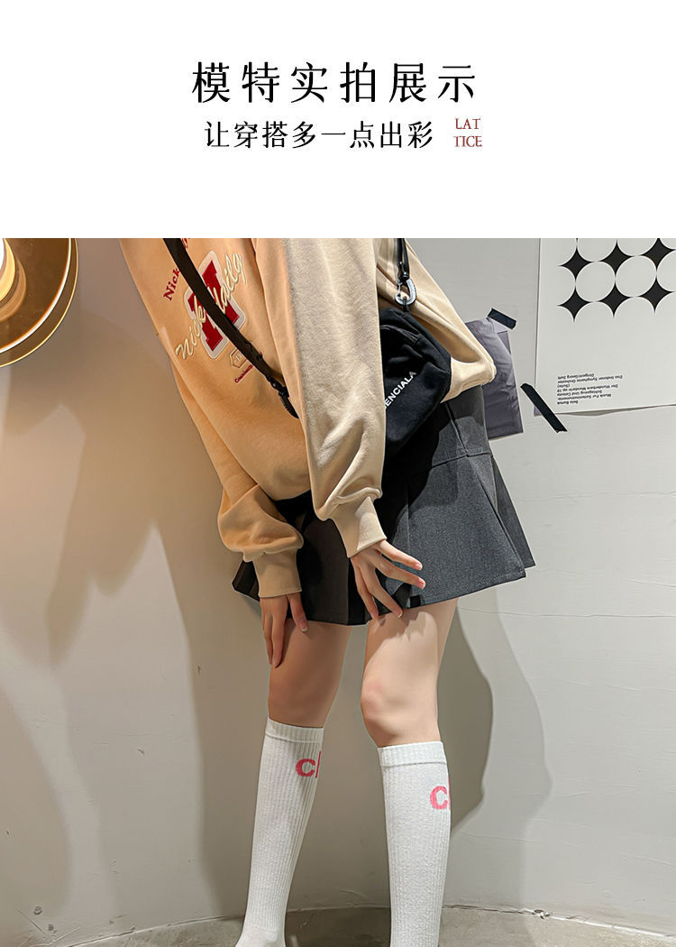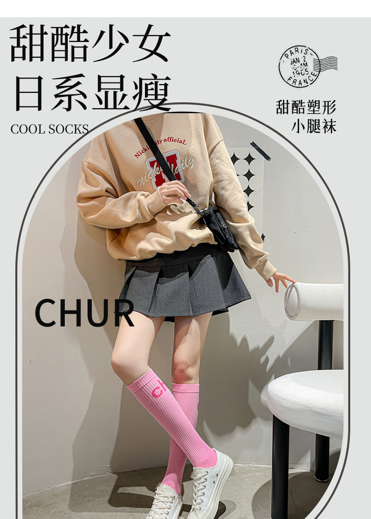 여성용 종아리 양말, 하이삭스, 컬리지 스타일, 핑크 압박스타킹, 세로 줄무늬, 높은 탄력성, 롱삭스, 다리 슬림 효과스토어 가기
