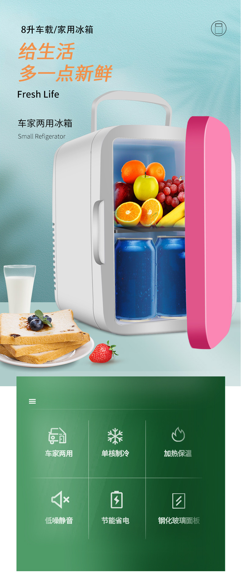 자동차용 냉난방 겸용, 온도조절, 다기능 미니 냉장고 8L 반도체 휴대용 차량용 냉장고 1인용스토어 가기