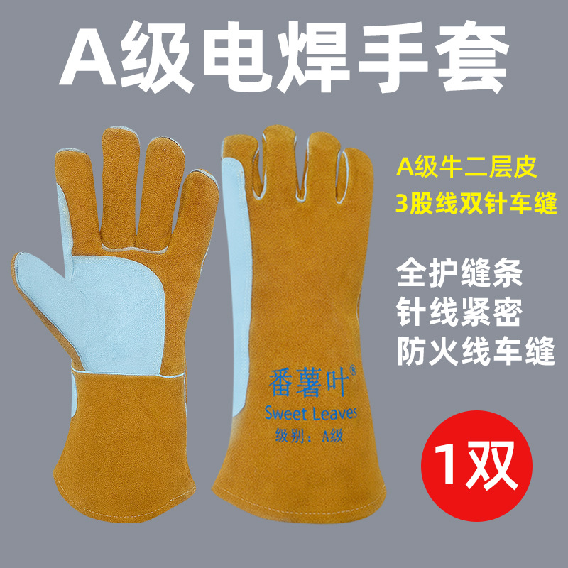 고구마 잎 용접 장갑 내마모성 고온 내성 조선소 용접 옥외 현장 취급 절단 방지 소가죽 노동 보호 장갑
