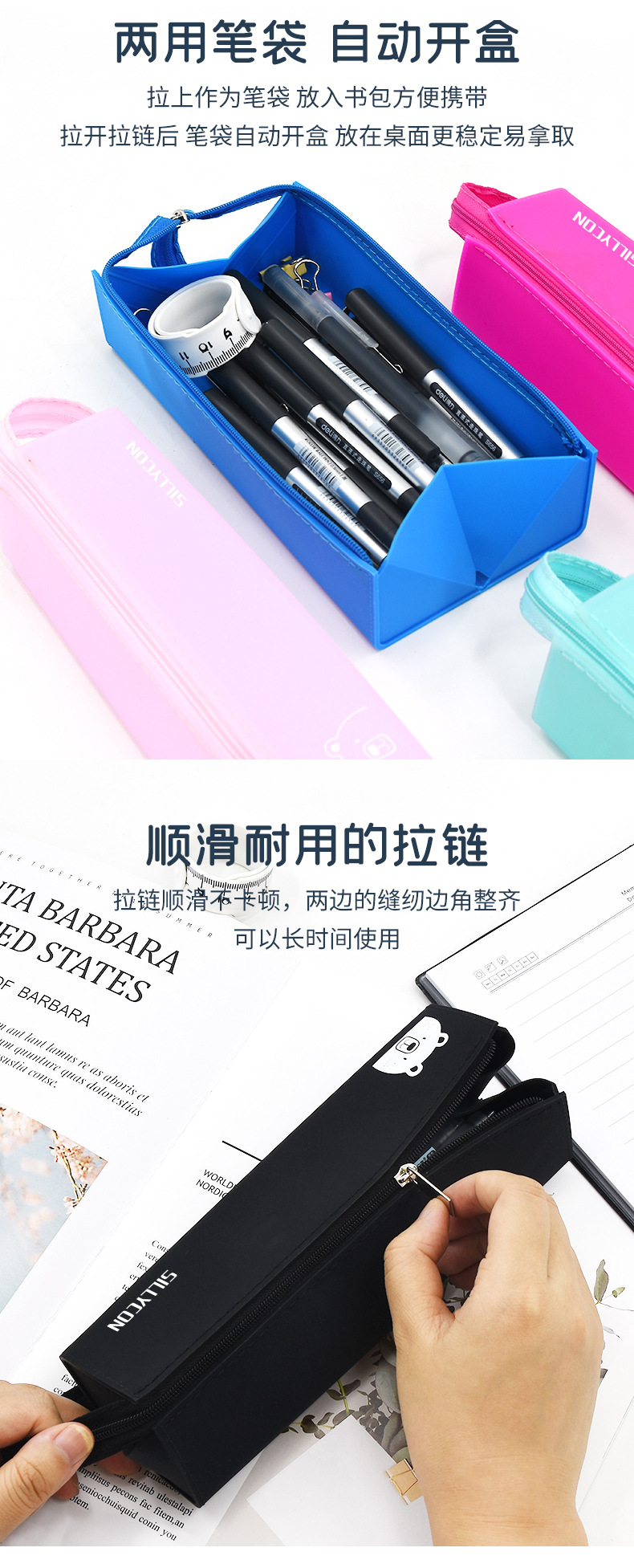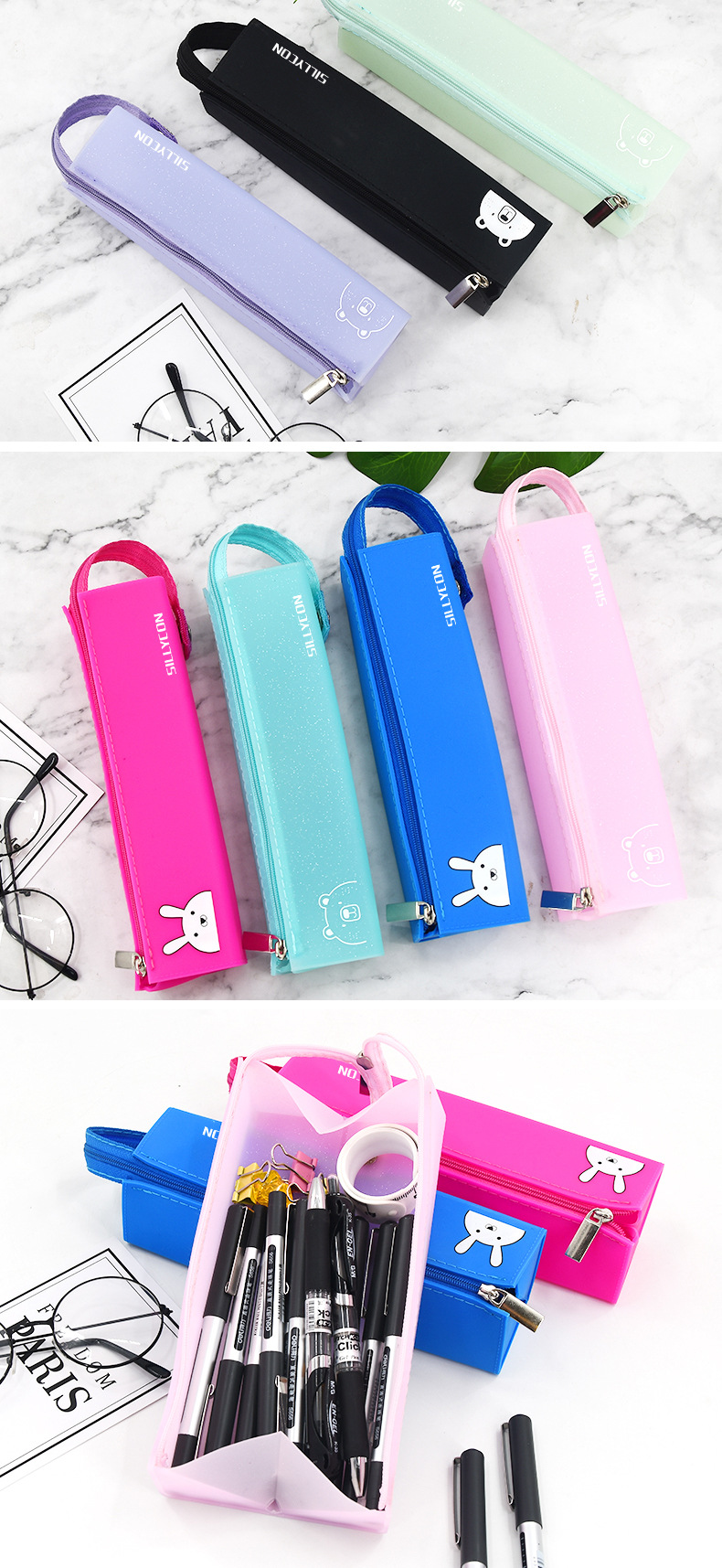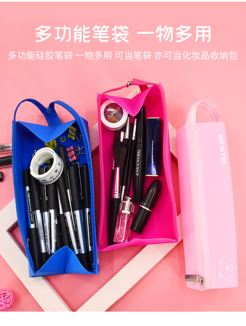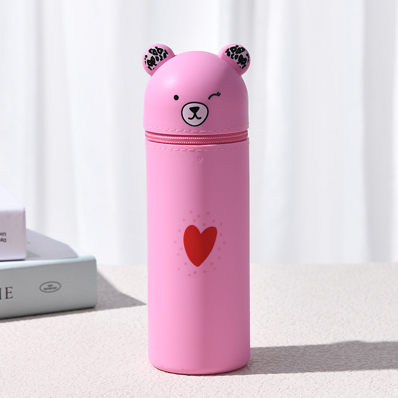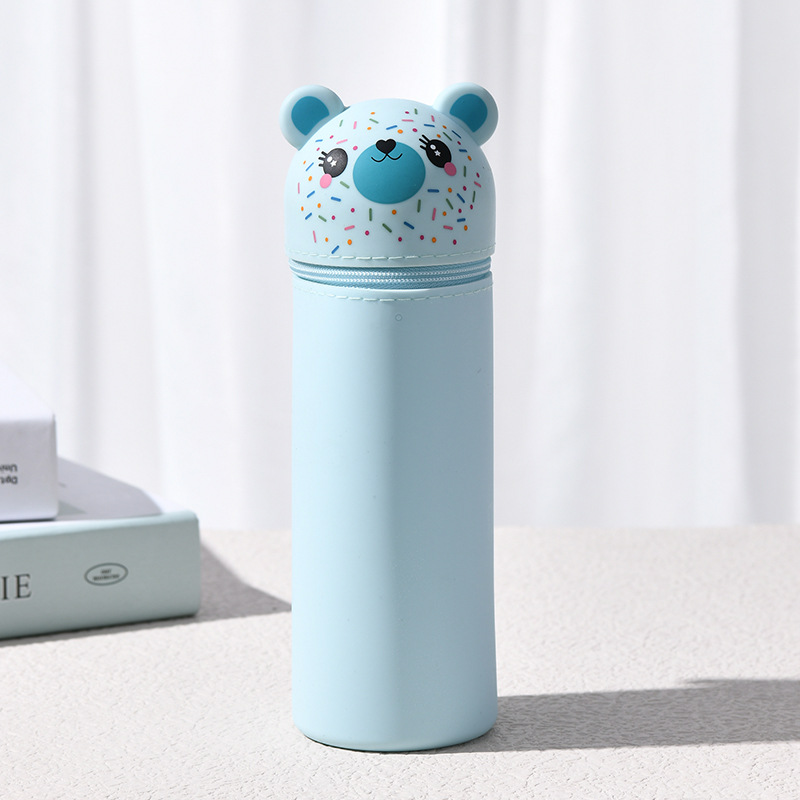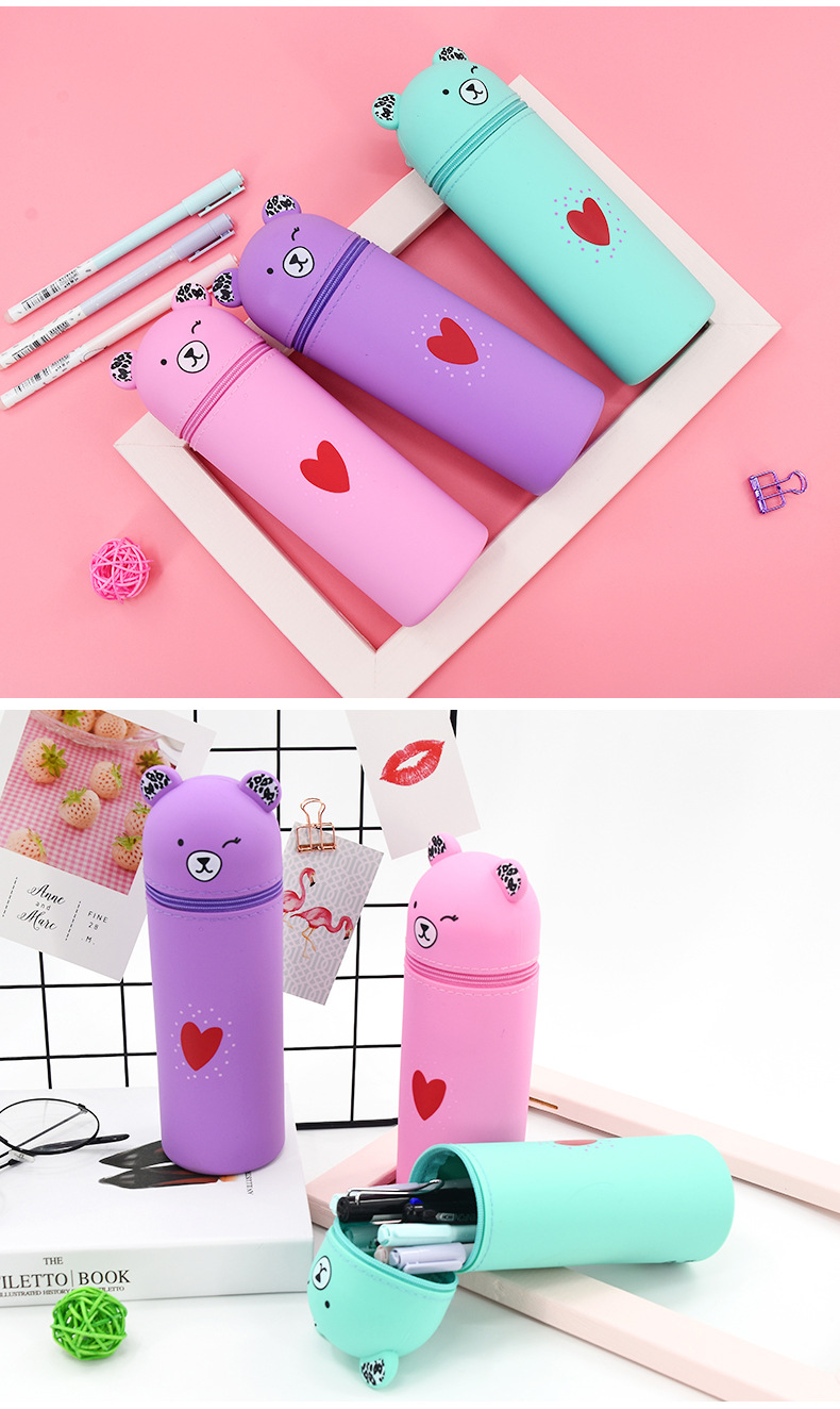 곰 창조적 인 문구 연필 가방 학생 용품 펜 홀더 휴일 선물 미용 메이크업 보관 상자 실리콘 휴대용 필통
