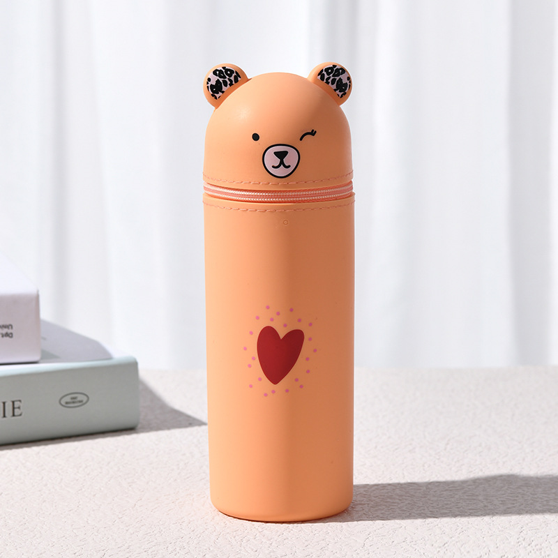 곰 창조적 인 문구 연필 가방 학생 용품 펜 홀더 휴일 선물 미용 메이크업 보관 상자 실리콘 휴대용 필통스토어 가기
