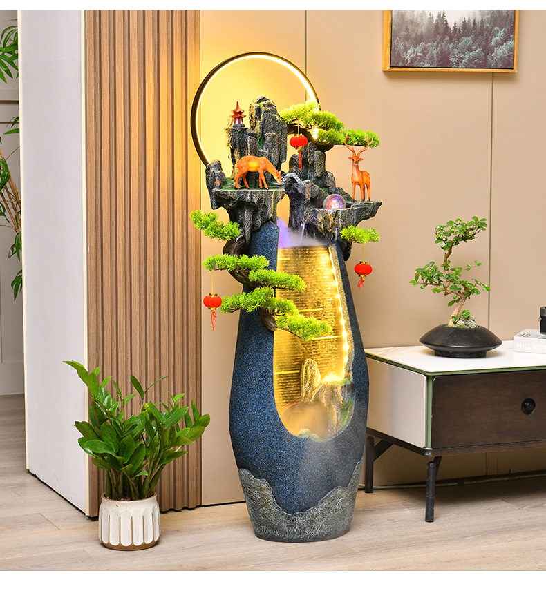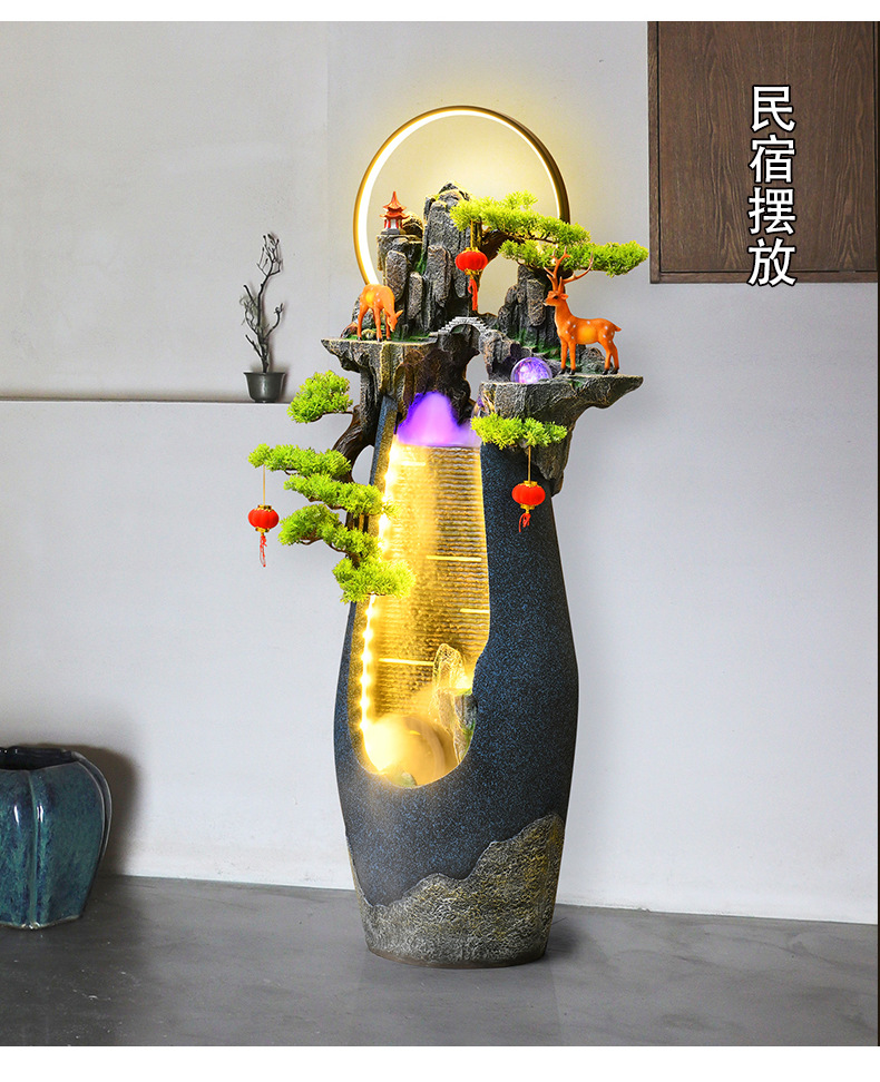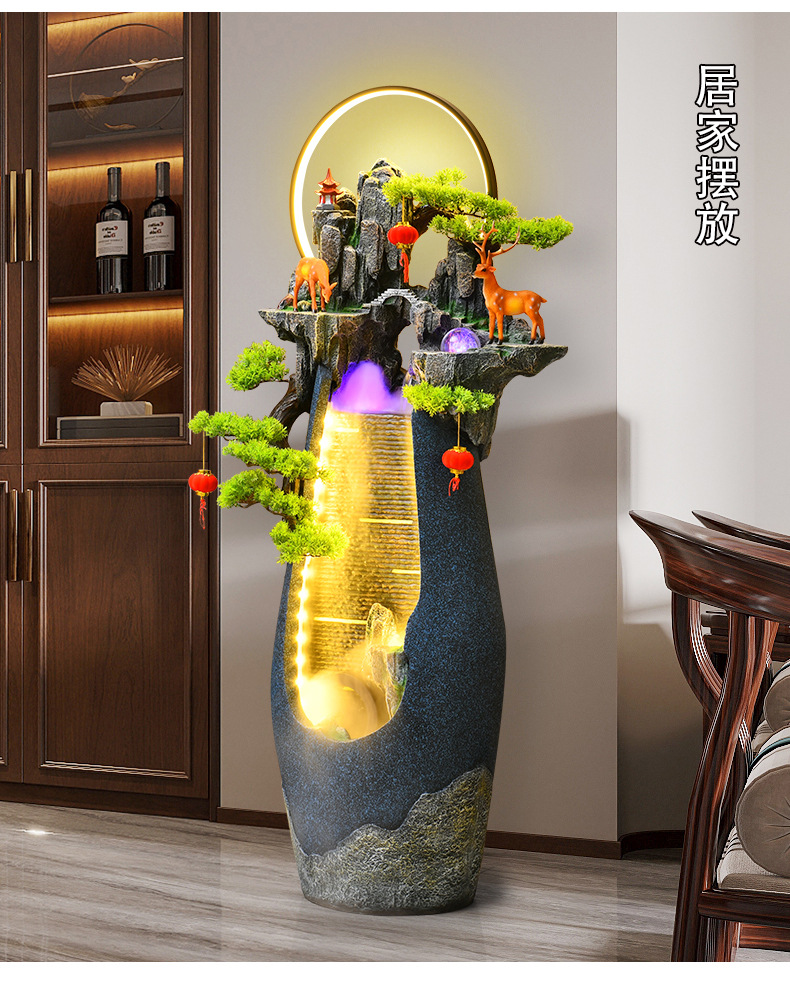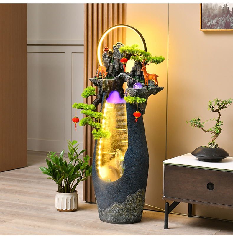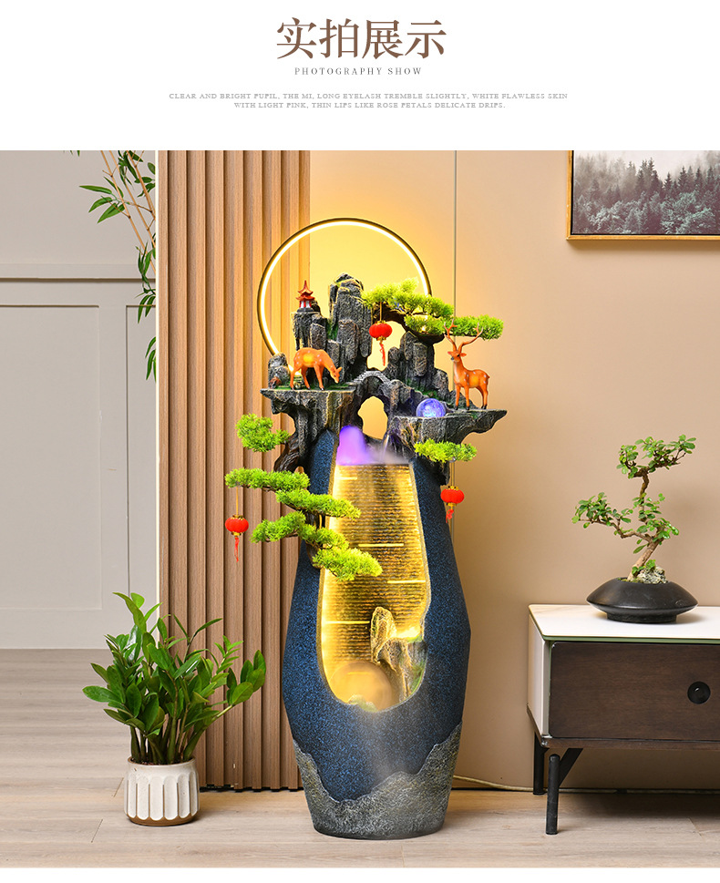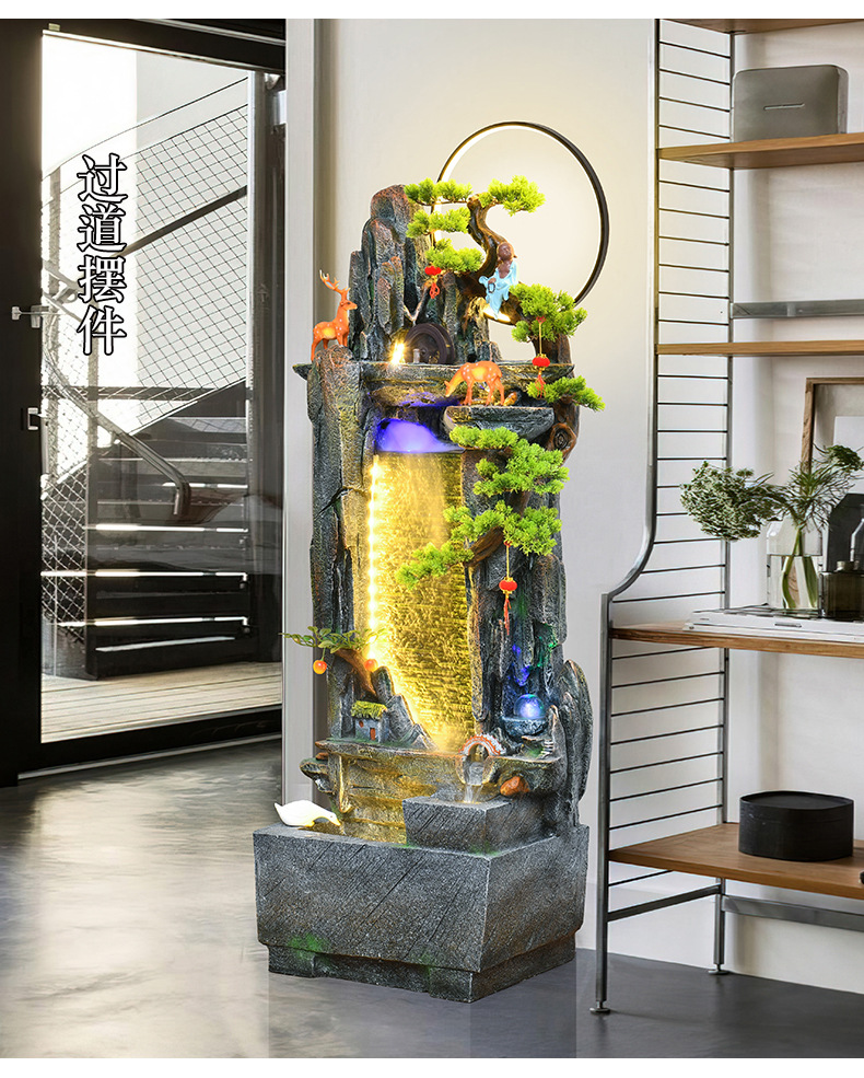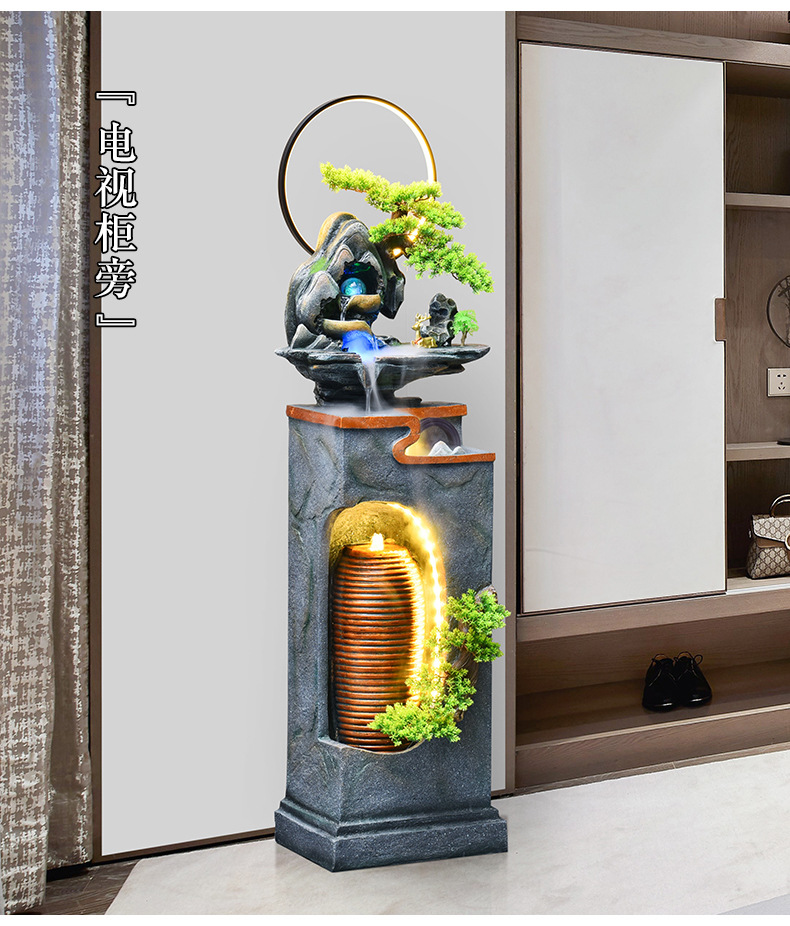 바위 흐르는 물 분수 장식품 집 거실 현관 사무실 계산원 순환 흐르는 물 행운의 풍경 장식스토어 가기