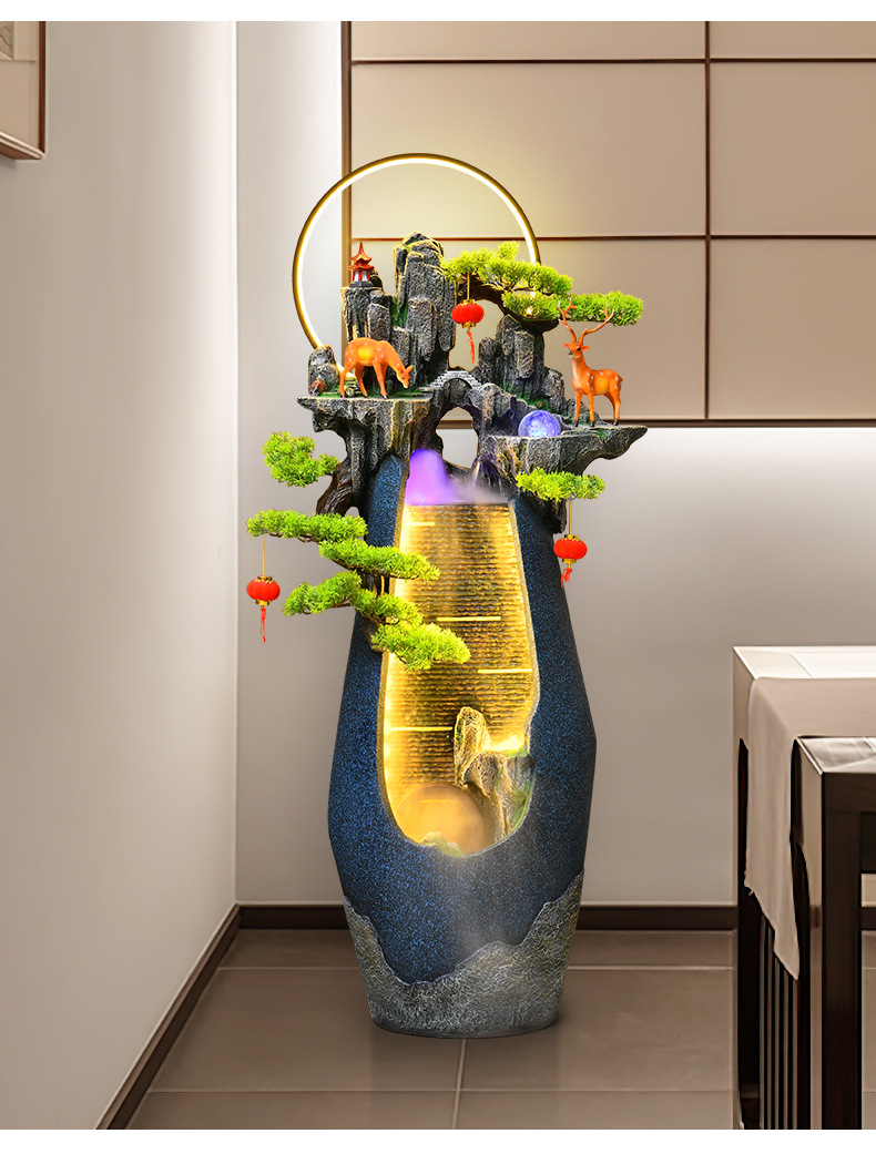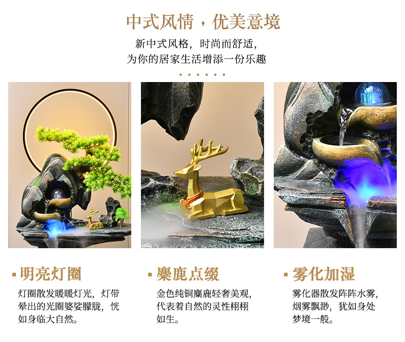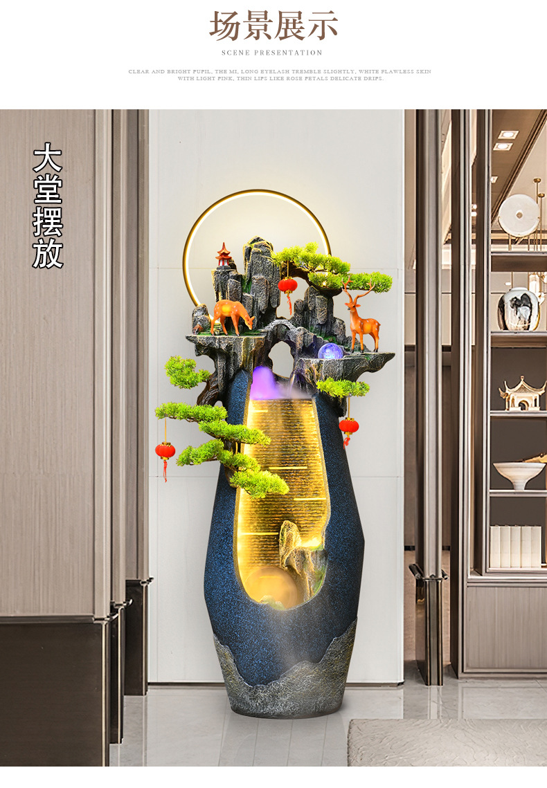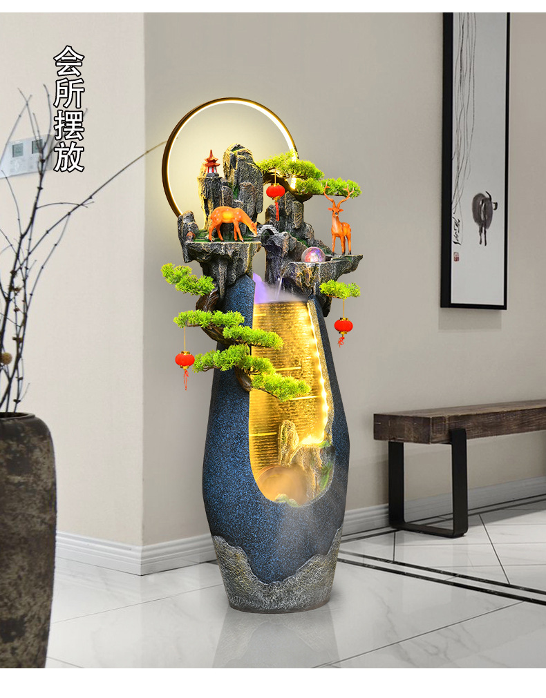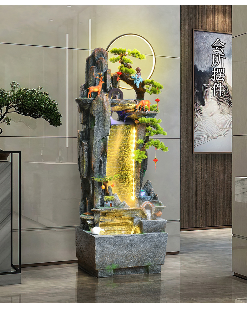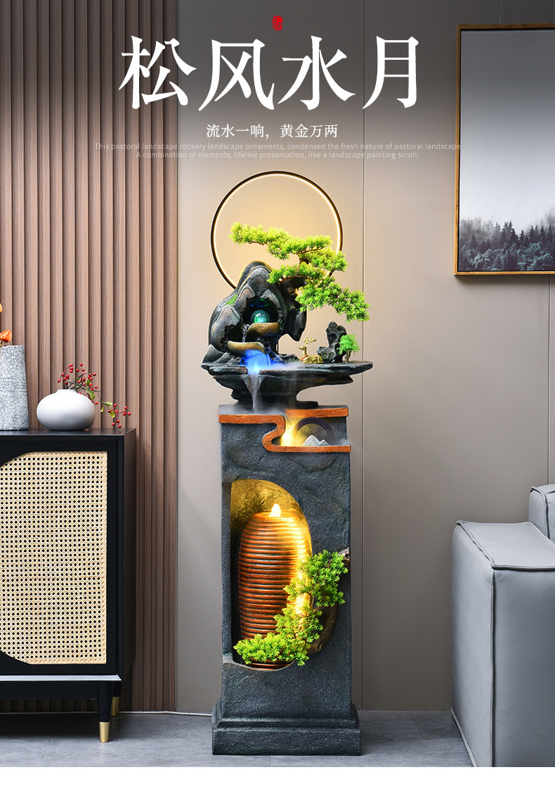 바위 흐르는 물 분수 장식품 집 거실 현관 사무실 계산원 순환 흐르는 물 행운의 풍경 장식스토어 가기