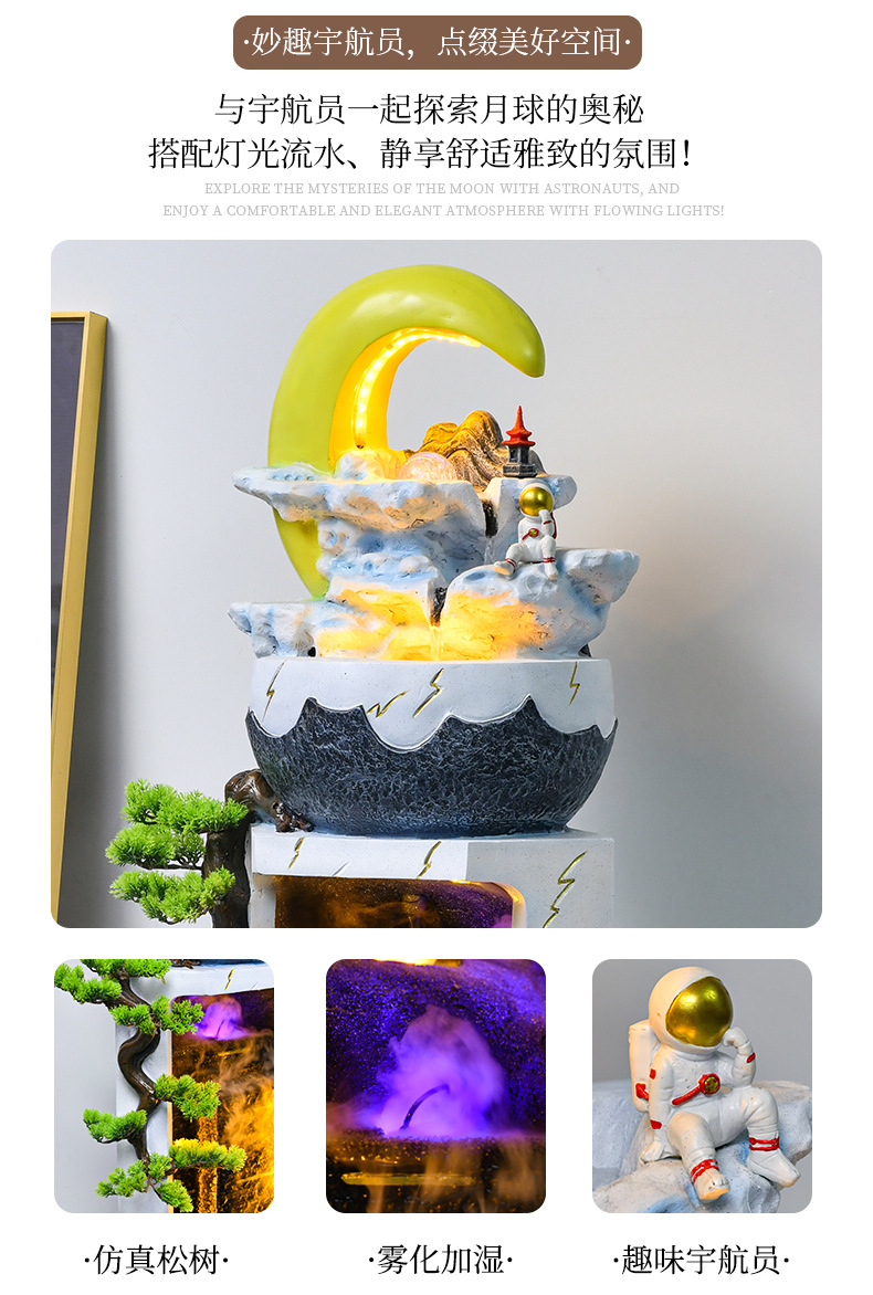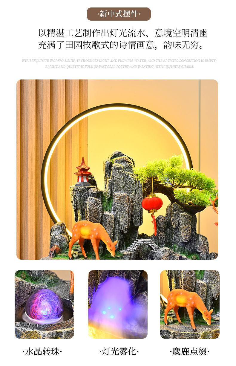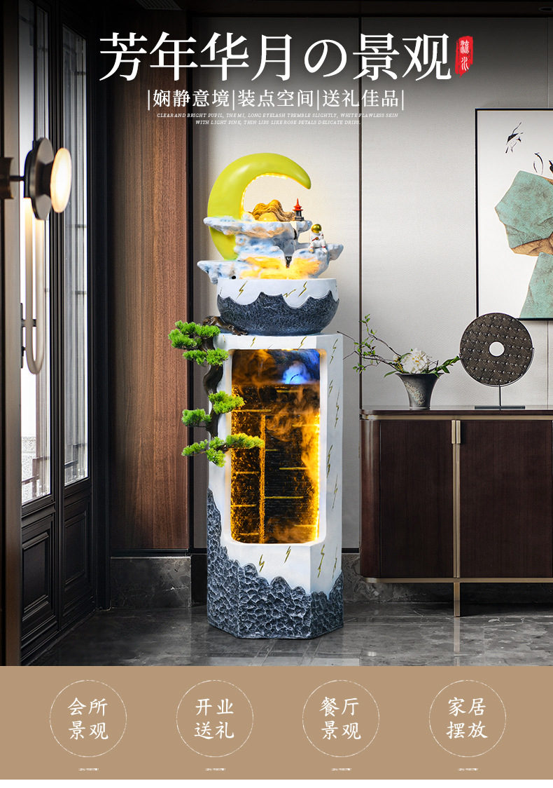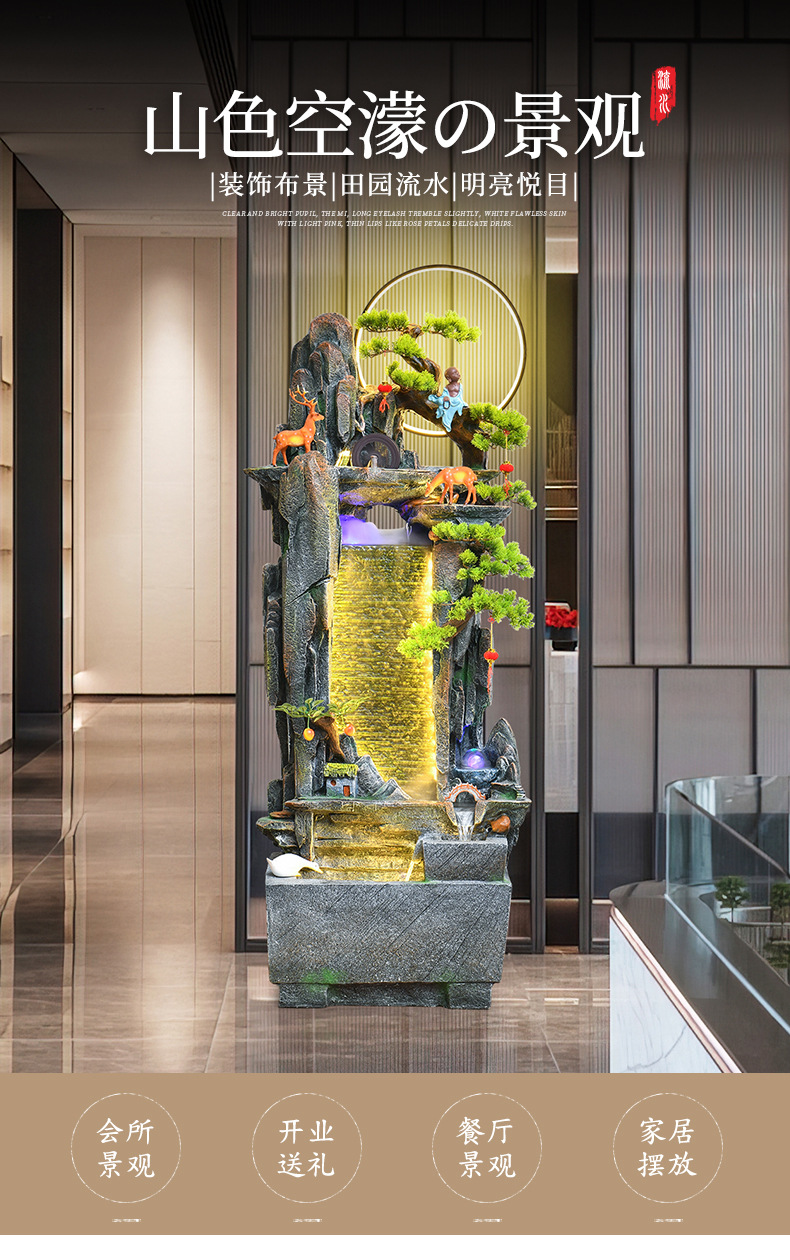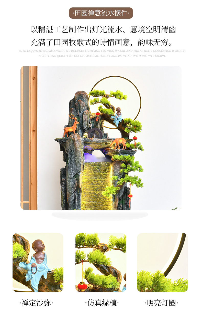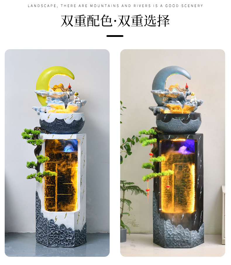 바위 흐르는 물 분수 장식품 집 거실 현관 사무실 계산원 순환 흐르는 물 행운의 풍경 장식스토어 가기