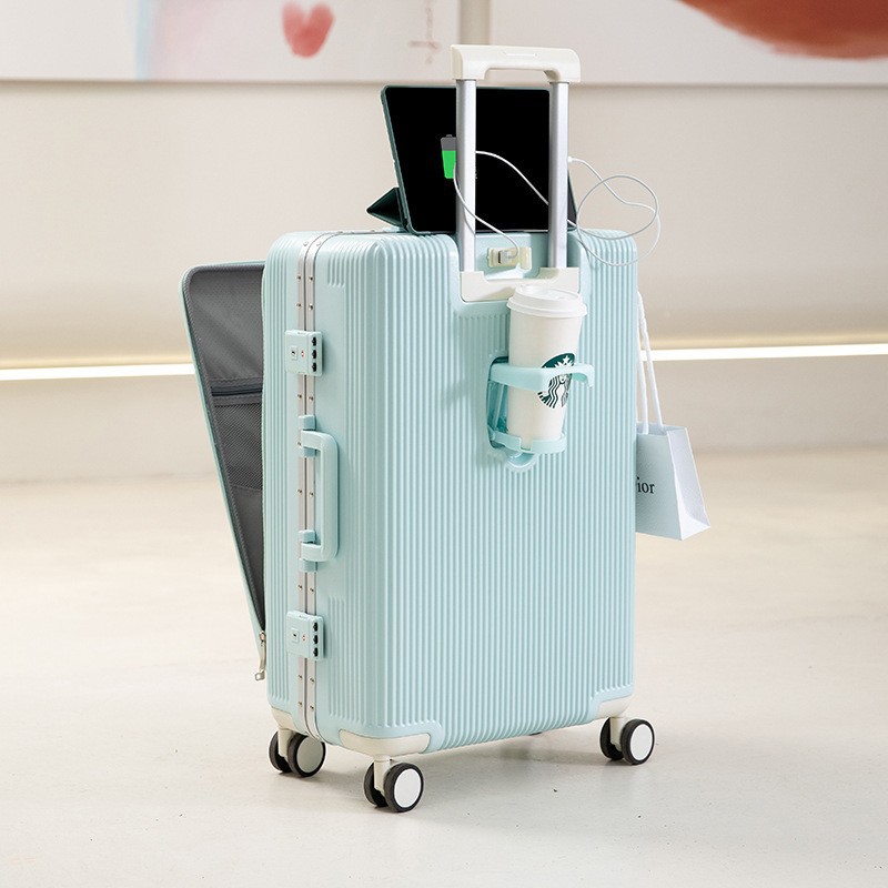다기능 알루미늄 프레임 가방 20inch 전면 오픈 커버 트롤리 케이스 범용 휠 가방 여성 비밀번호 탑승 케이스 남성 24
