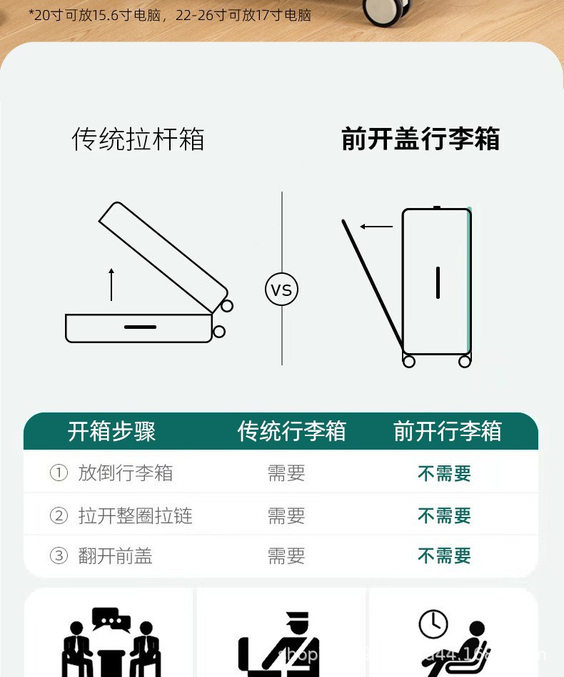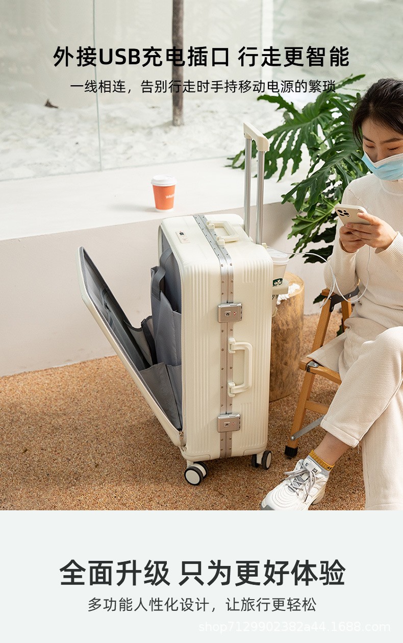 다기능 알루미늄 프레임 가방 20inch 전면 오픈 커버 트롤리 케이스 범용 휠 가방 여성 비밀번호 탑승 케이스 남성 24스토어 가기