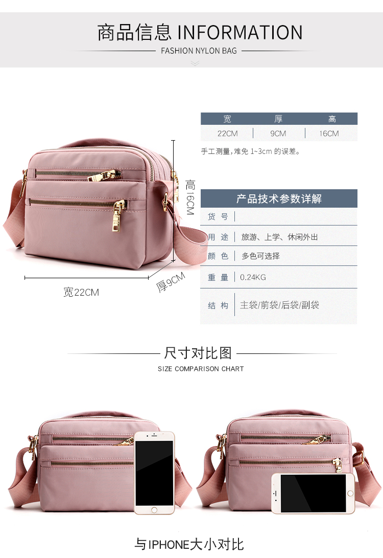 다층 지퍼 옥스포드 천 작은 가방 방수 메신저 가방 대용량 금전 등록기 비즈니스 가방 여성 싱글 숄더 경량 가방 아메리칸 스타일스토어 가기