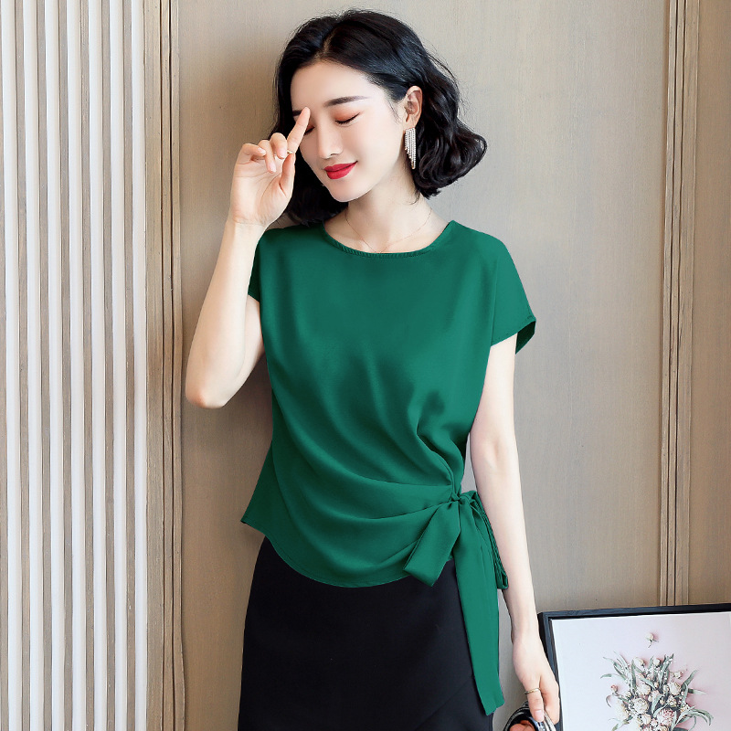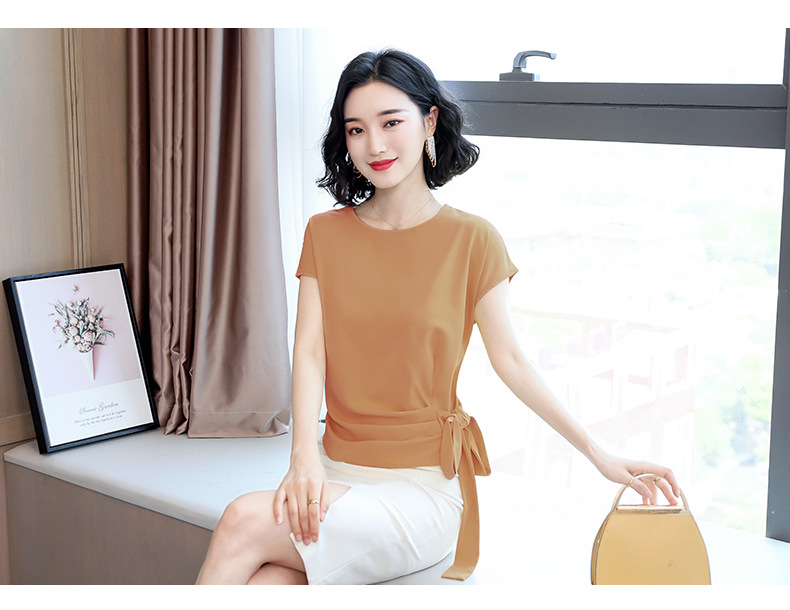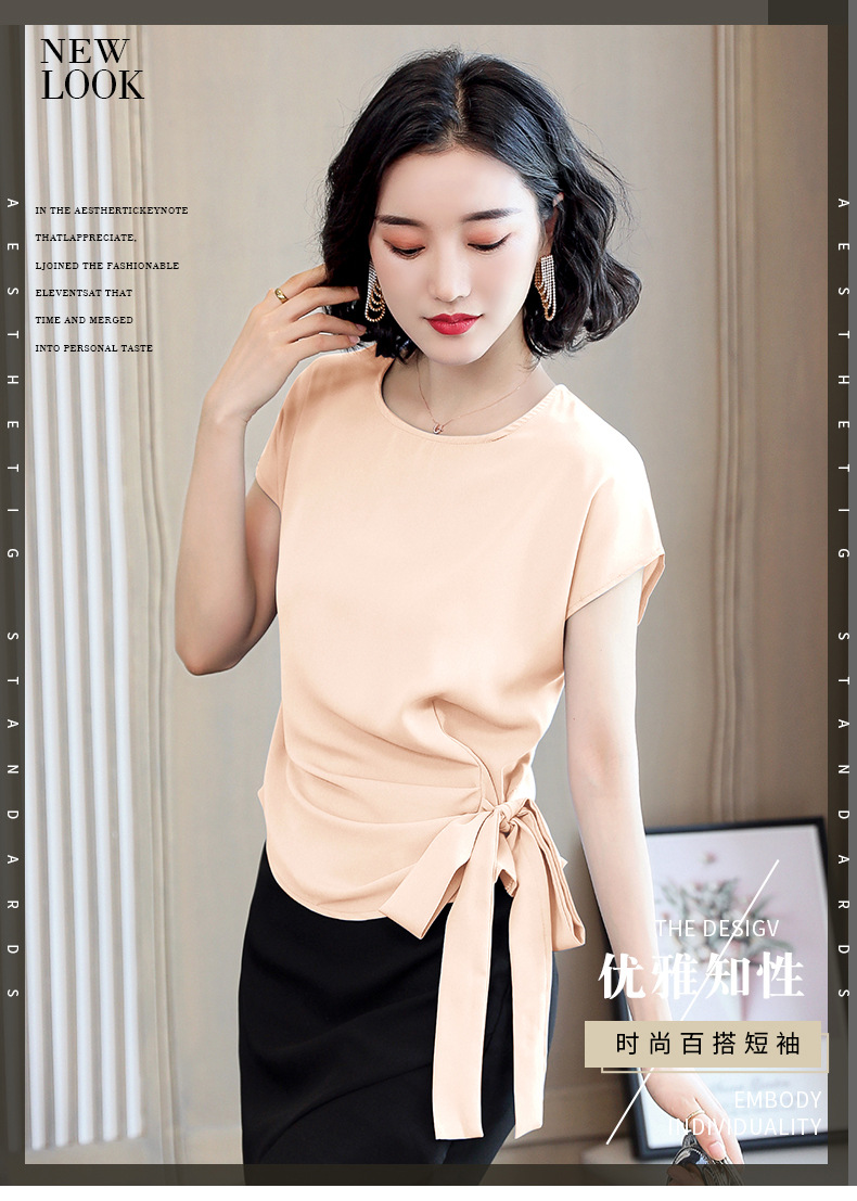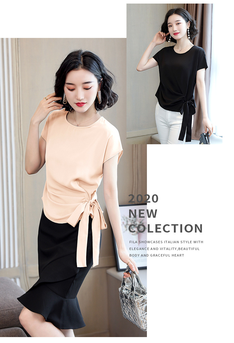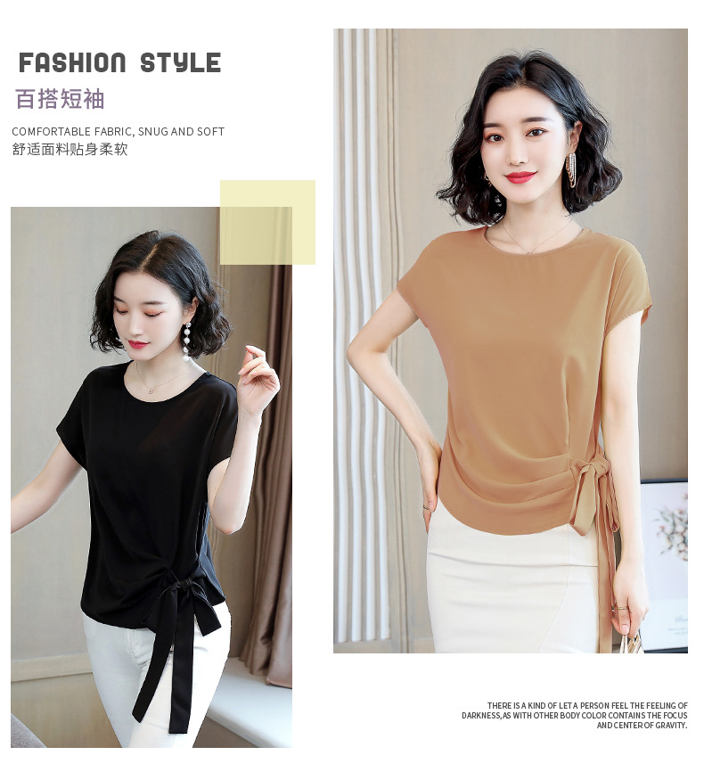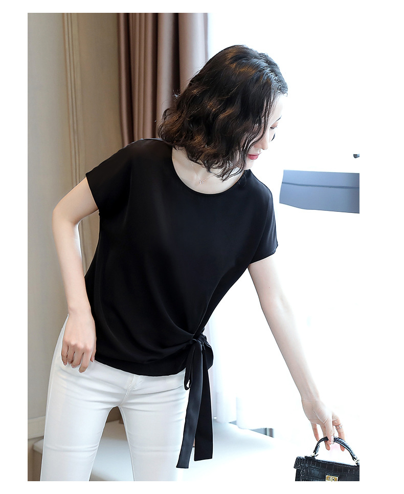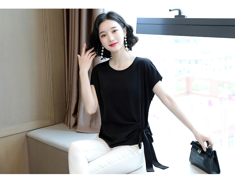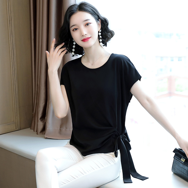헤비 실크 블랙 반팔 티셔츠 여성용 루즈한 레이스업 플러스 사이즈 2023 새로운 슬림핏 여름 뽕나무 실크 탑