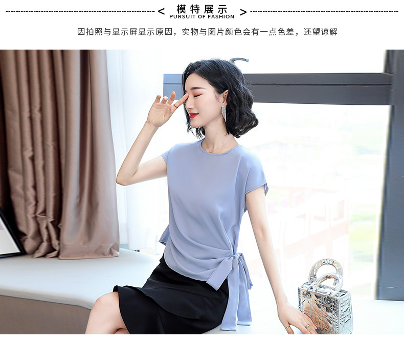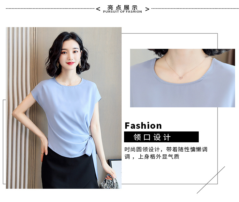 헤비 실크 블랙 반팔 티셔츠 여성용 루즈한 레이스업 플러스 사이즈 2023 새로운 슬림핏 여름 뽕나무 실크 탑스토어 가기
