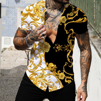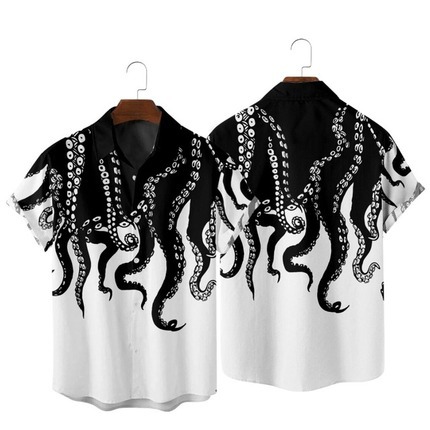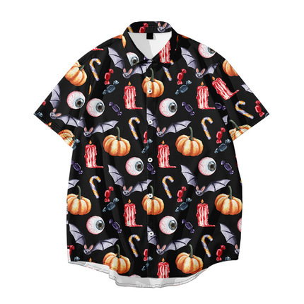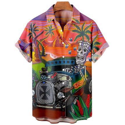 새로운 크로스 보더 하와이안 셔츠 3D 프린트 해골 프린트 캐주얼 느슨한 셔츠 하와이안 남성 셔츠 FD스토어 가기