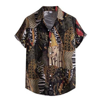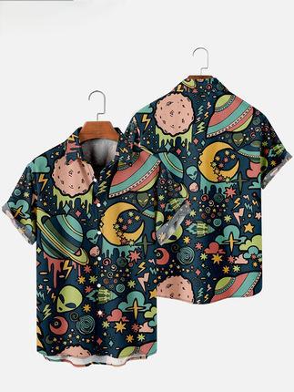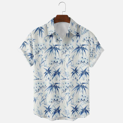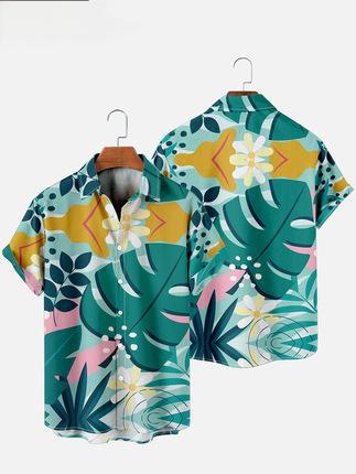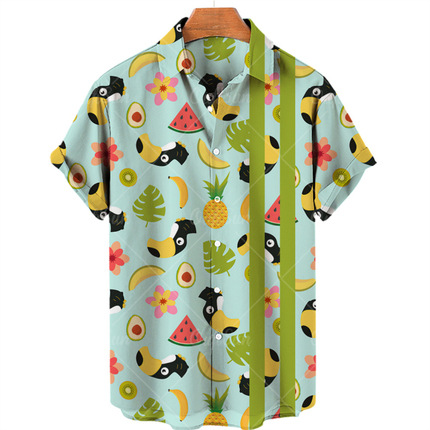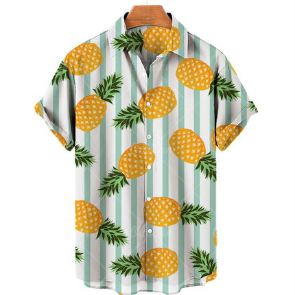 새로운 크로스 보더 하와이안 셔츠 3D 프린트 해골 프린트 캐주얼 느슨한 셔츠 하와이안 남성 셔츠 FD