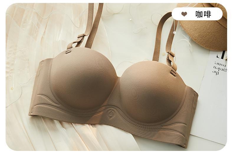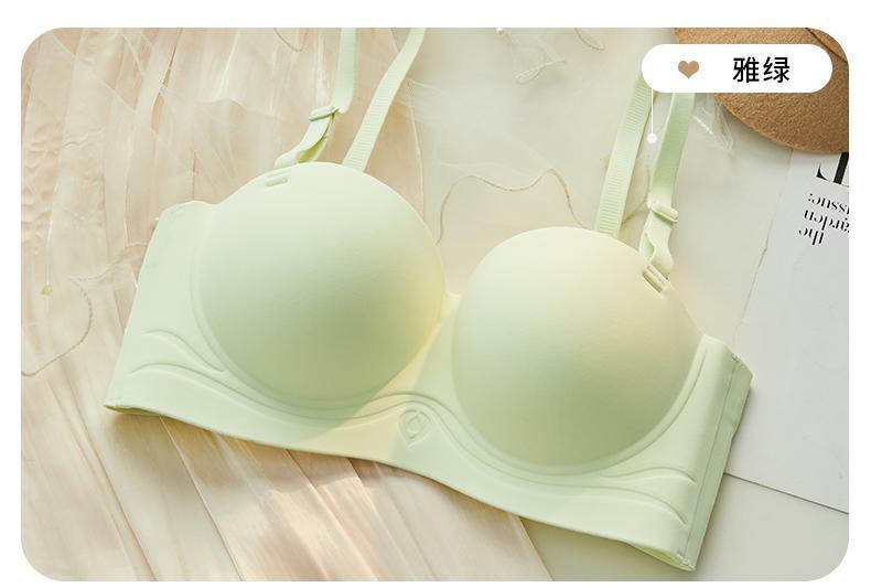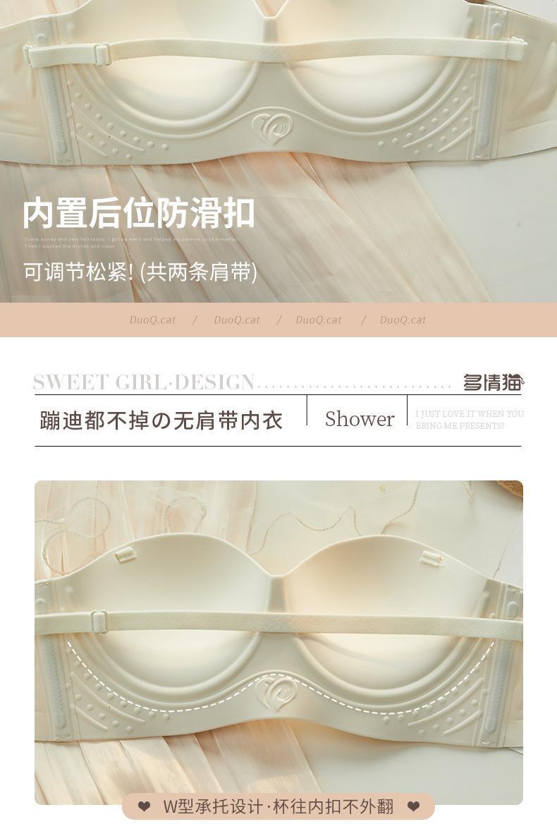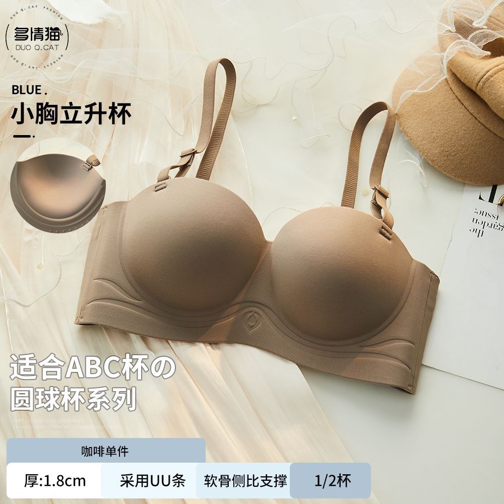 다정한 고양이 끈이 없는 속옷 여성용 작은 가슴 푸시 업 미끄럼 방지 탑 업 대형 원활한 무테 통기성 하프 컵 브라