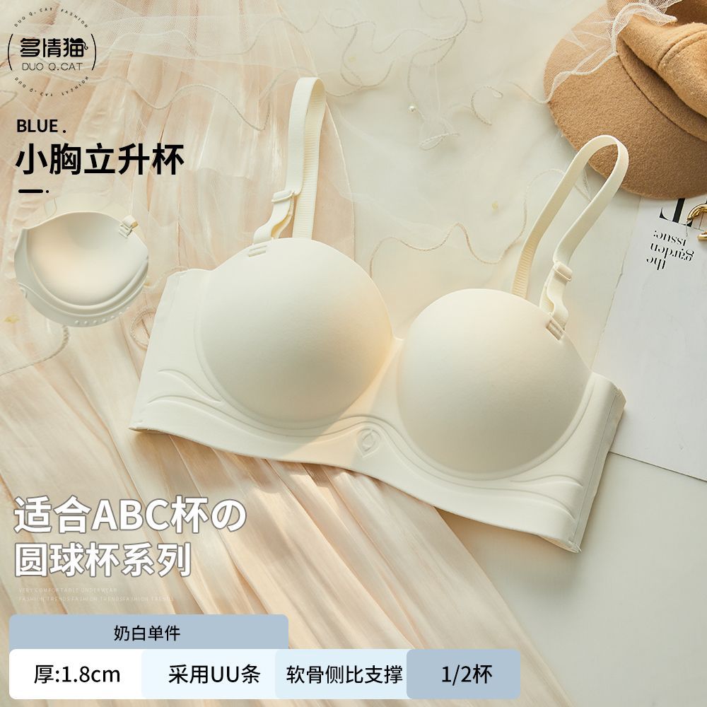 다정한 고양이 끈이 없는 속옷 여성용 작은 가슴 푸시 업 미끄럼 방지 탑 업 대형 원활한 무테 통기성 하프 컵 브라스토어 가기