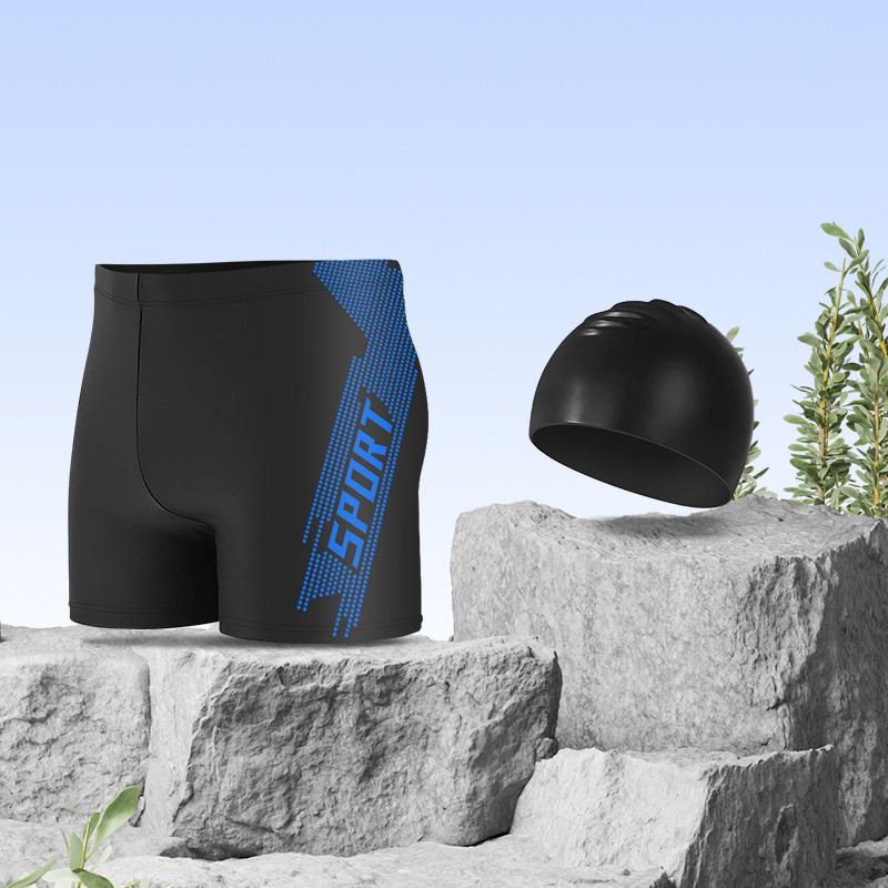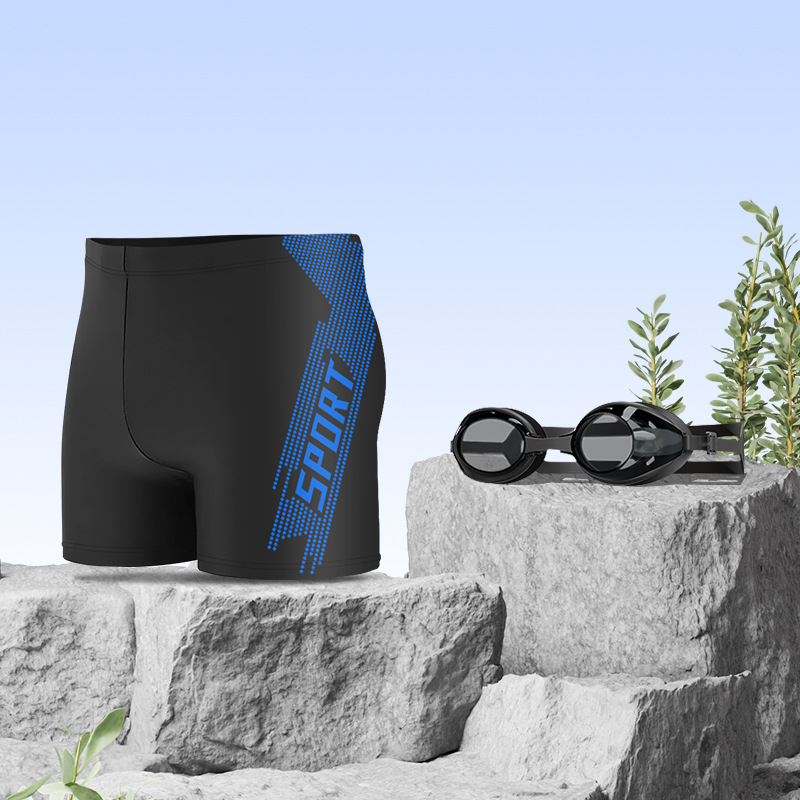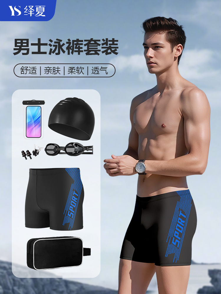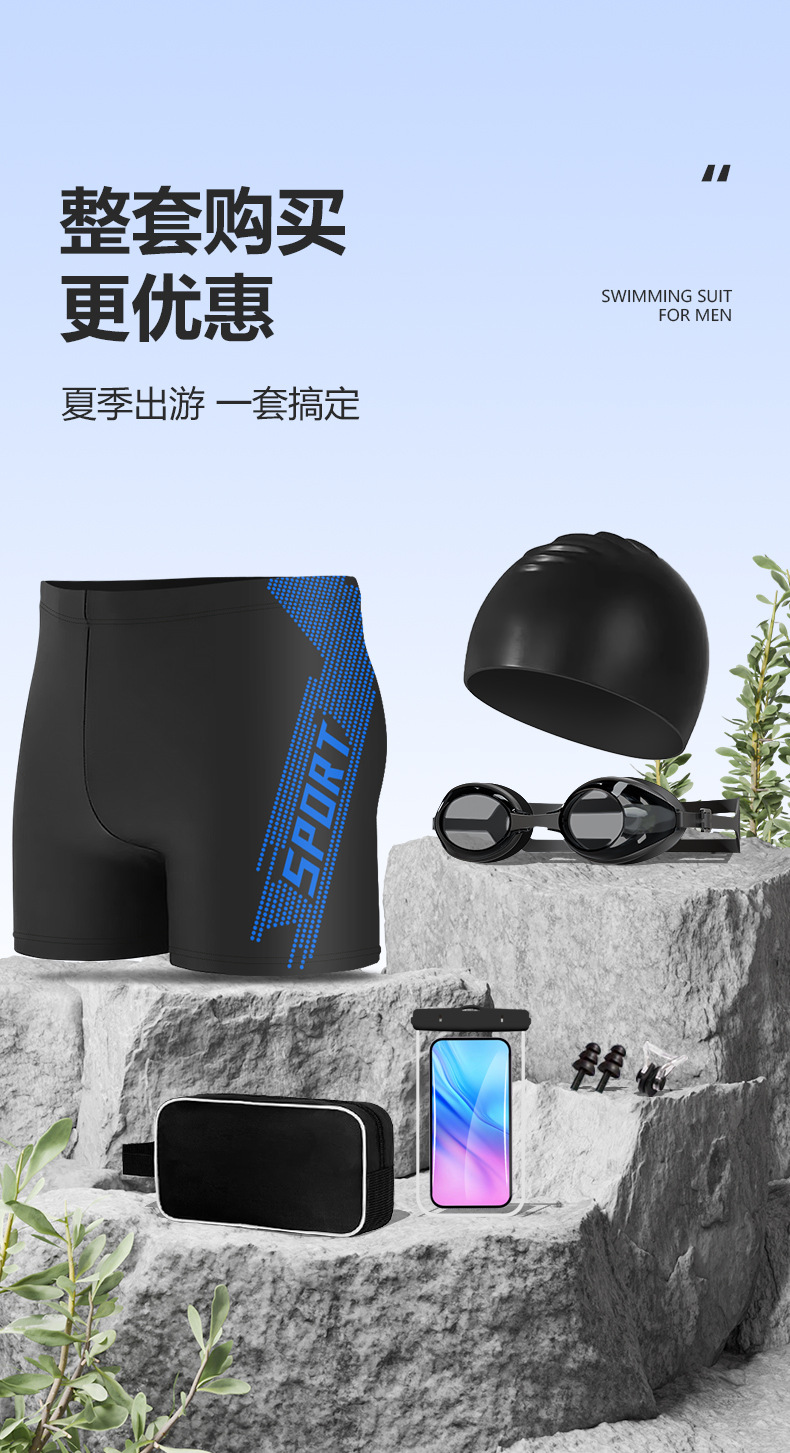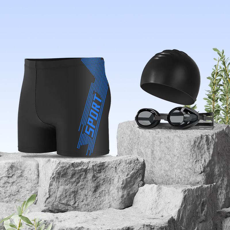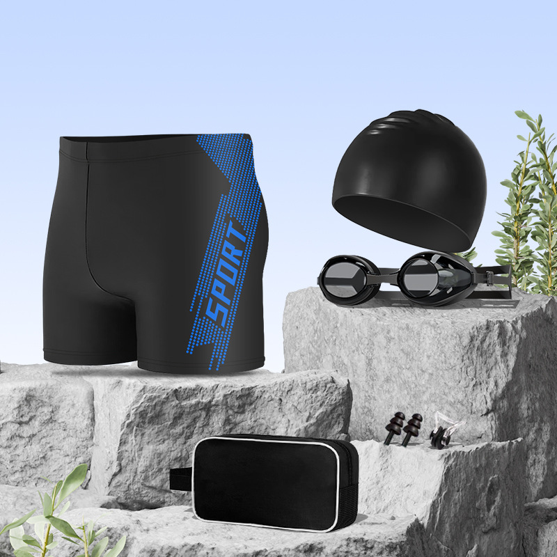 • 스포츠 블루 [수영 트렁크 + 5300 수영 고글 + 실리콘 캡 + 수영 가방 + 코 클립 귀마개]