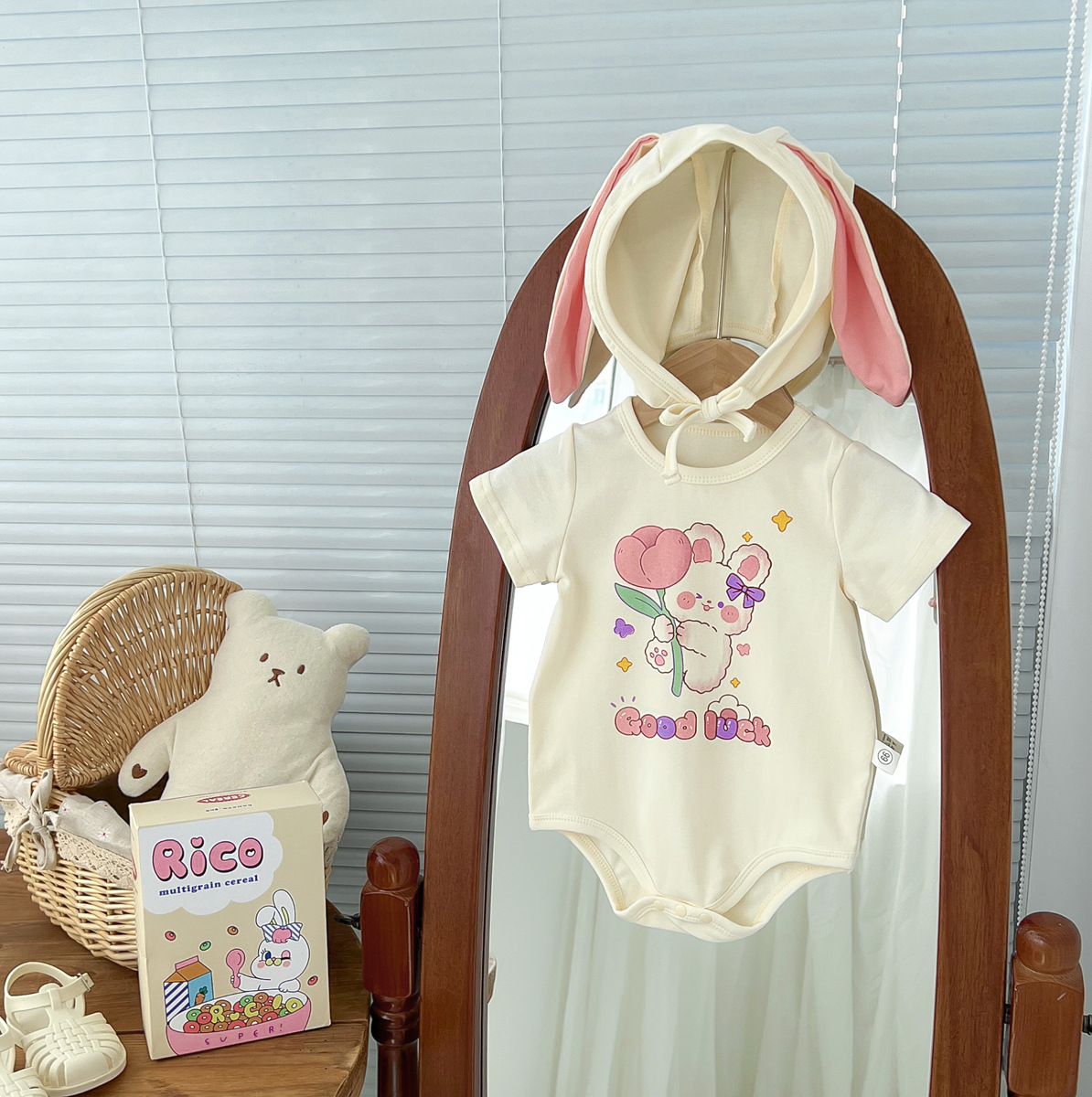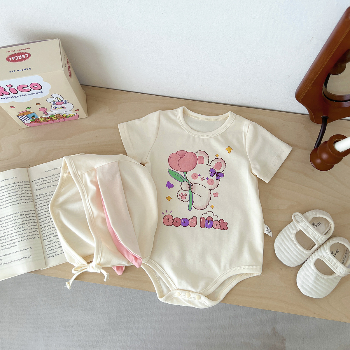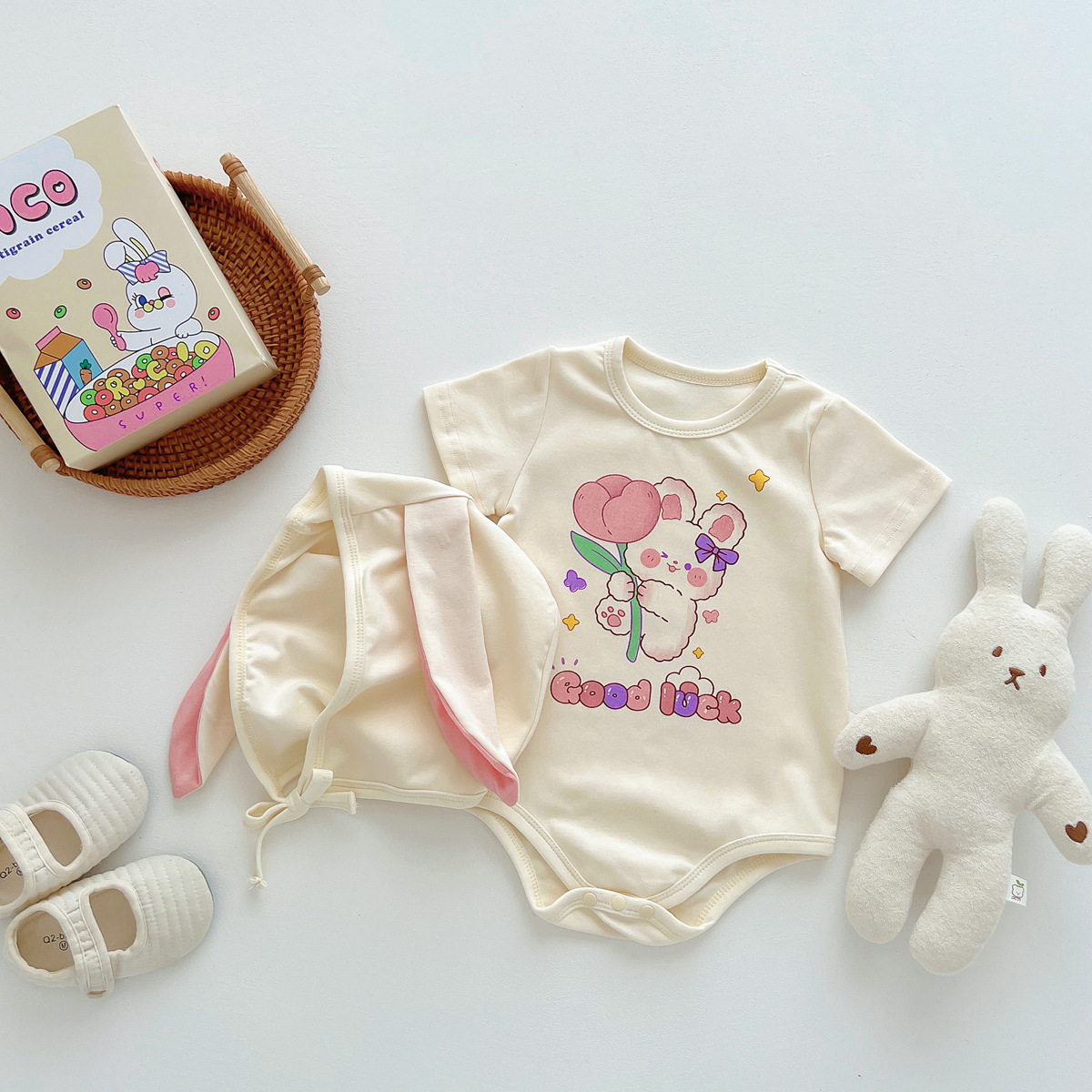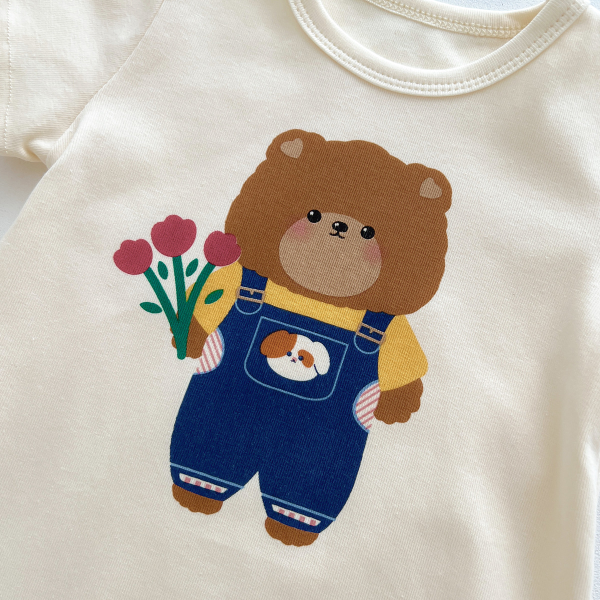 신생아 만화 모양의 가방 옷에 한국 스타일 아기 귀여운 곰 점프 슈트 아기 백일 사진 세트
